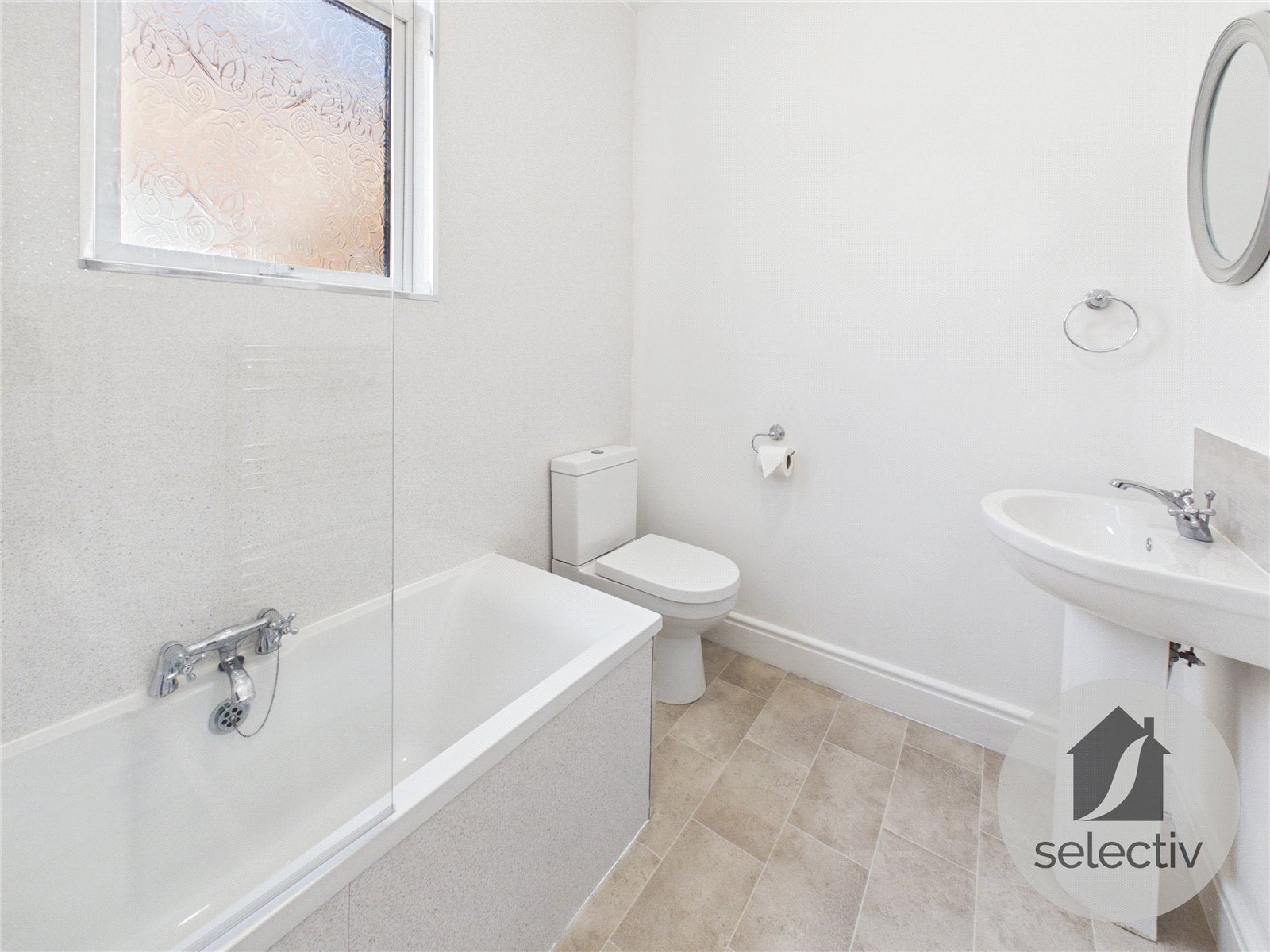 The ground floor also features a stylish, modern bathroom, finished in clean, contemporary tones.