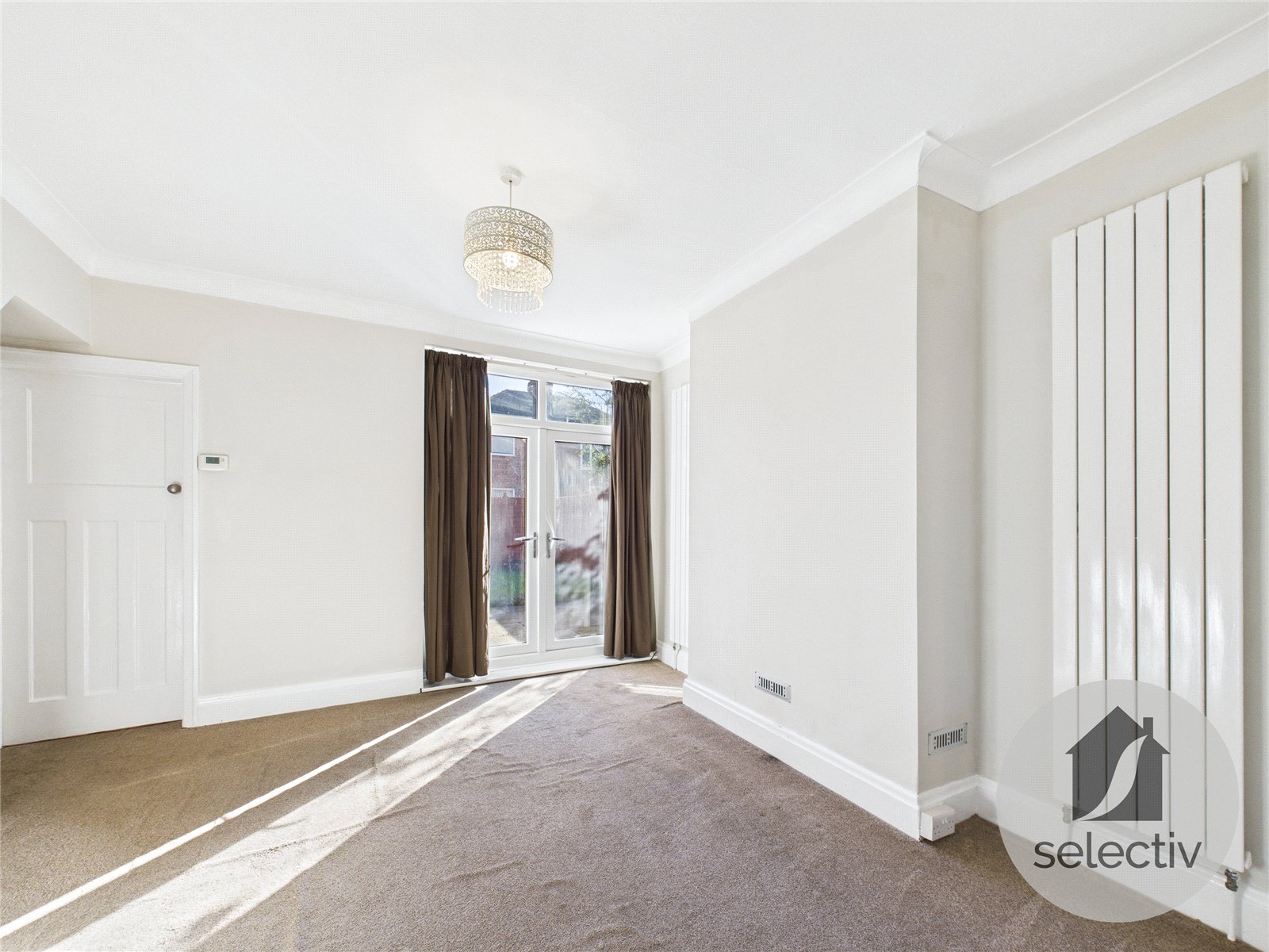 Inside, the entrance hall leads to a welcoming living room with a bay window to the front, creating a bright and airy space. The family room / dining room sits to the rear and features French doors opening out to the garden — perfect for relaxing or entertaining.
