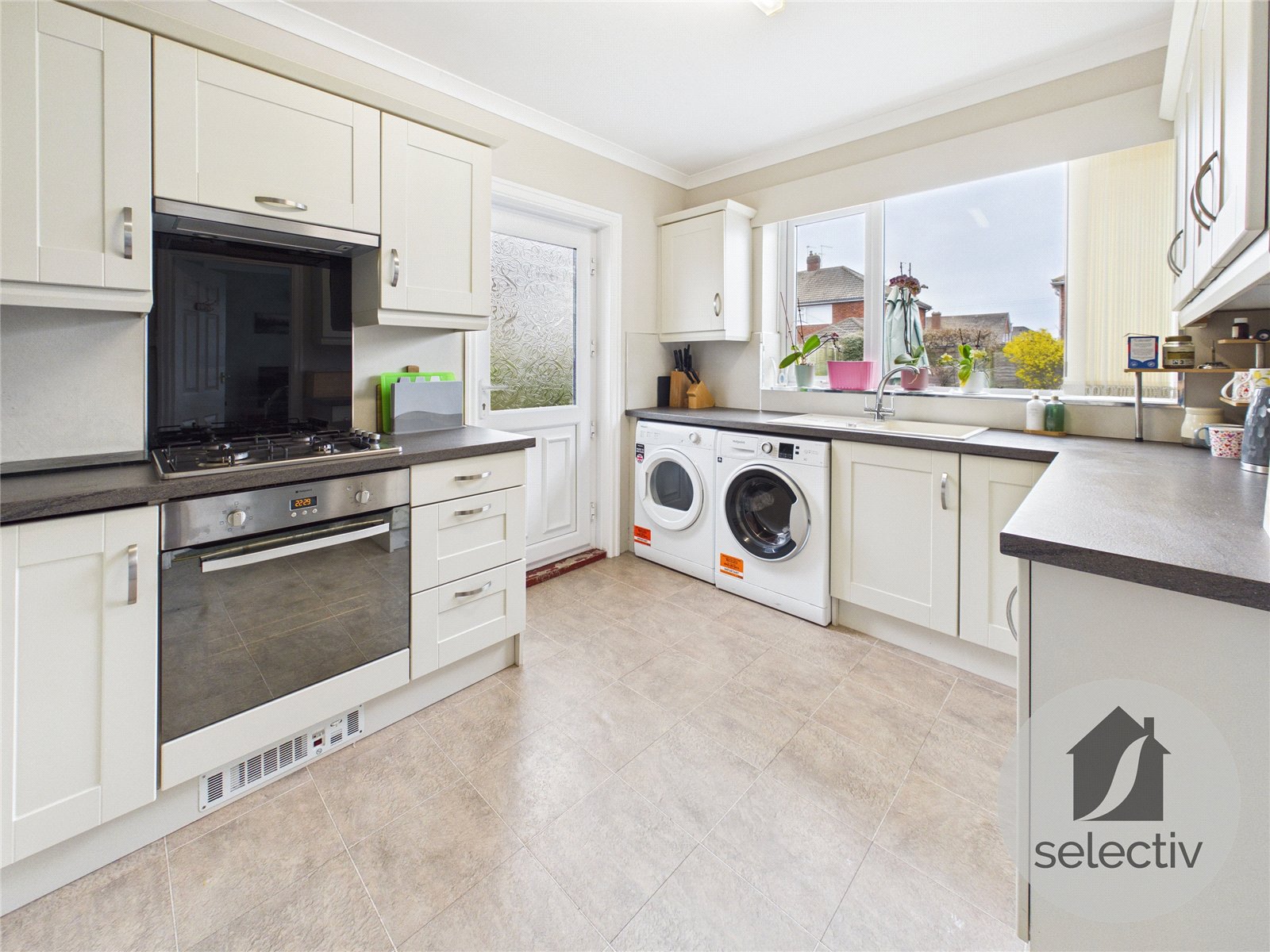 The kitchen is modern and well appointed, fitted with a range of wall and base units, offering excellent storage and workspace with access to the side.