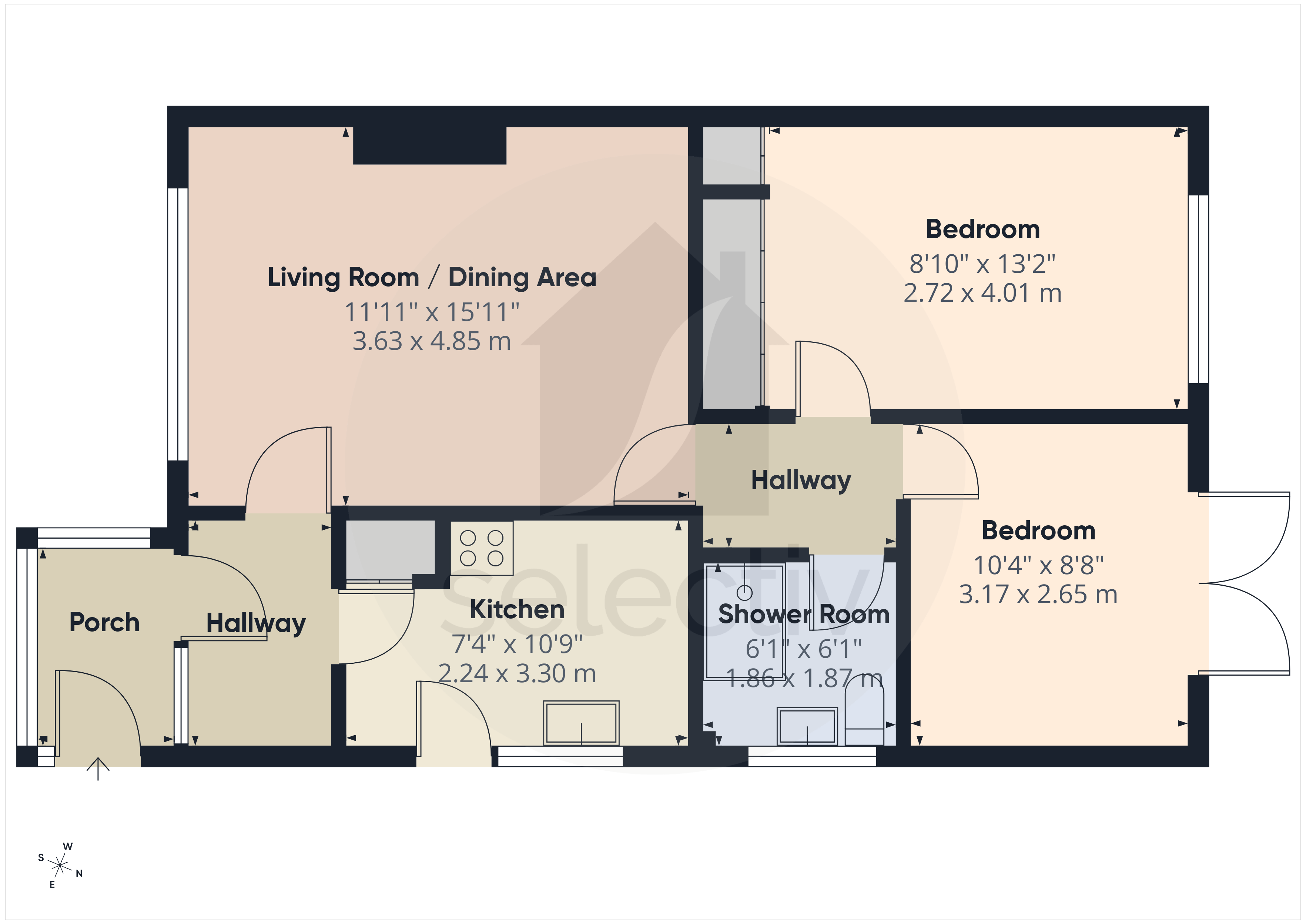 Internally, the layout is both practical and well-balanced, featuring a spacious living room with defined dining area, offering plenty of room for both relaxing and entertaining. The kitchen is fitted with a range of wall and base units and overlooks the rear garden, while the shower room is conveniently positioned and easily accessible from both bedrooms.