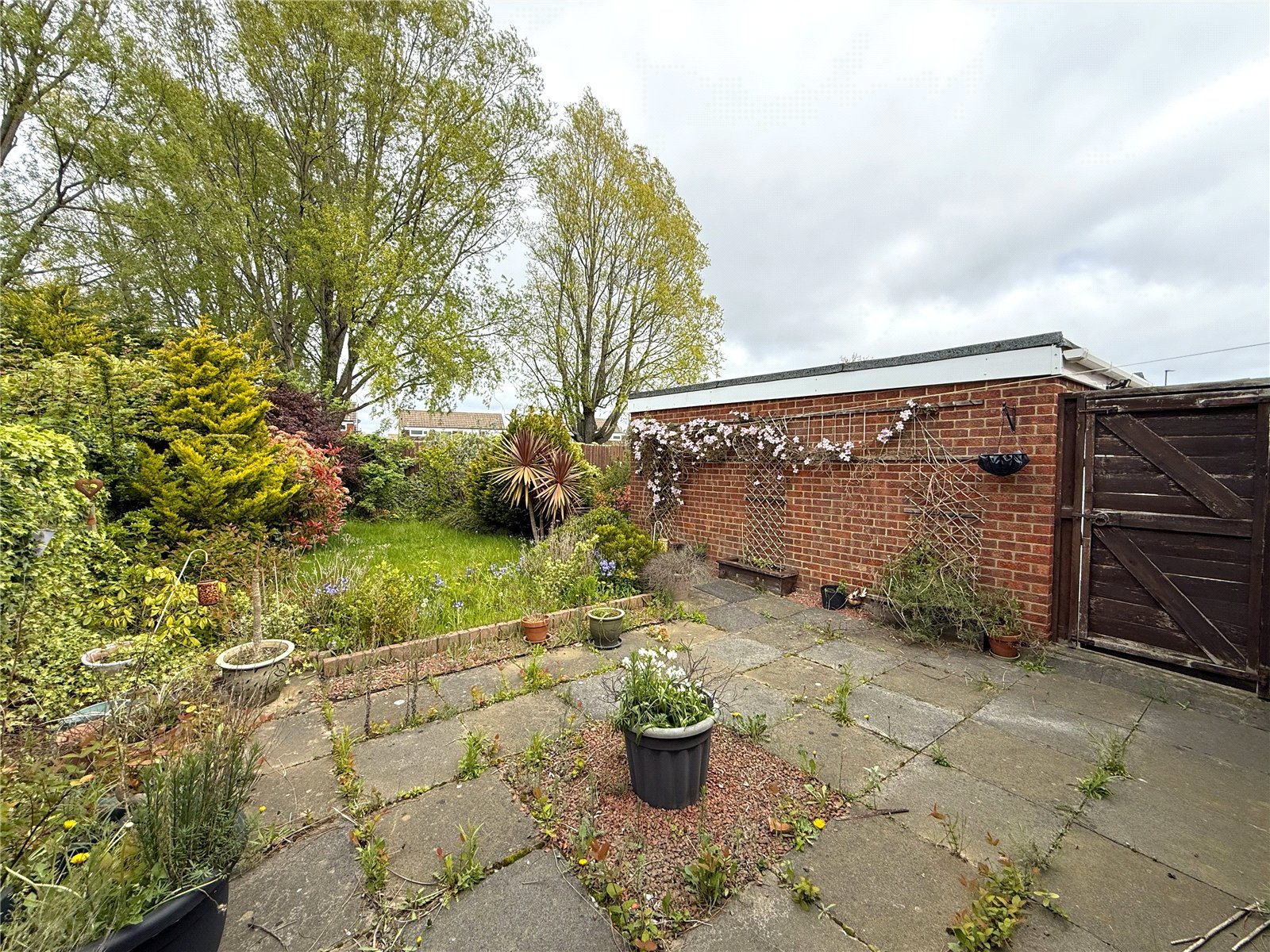 To the rear, the garden begins with a patio area, ideal for seating, before extending onto a lawn with well-stocked, established borders, offering a good degree of privacy and a lovely outdoor space to enjoy.