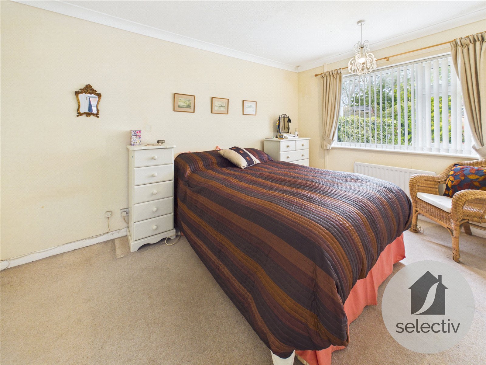 Positioned within a quiet cul-de-sac, the property enjoys a generous plot with a lawned front garden and mature borders, along with a side driveway leading to a detached garage, providing ample off-street parking.