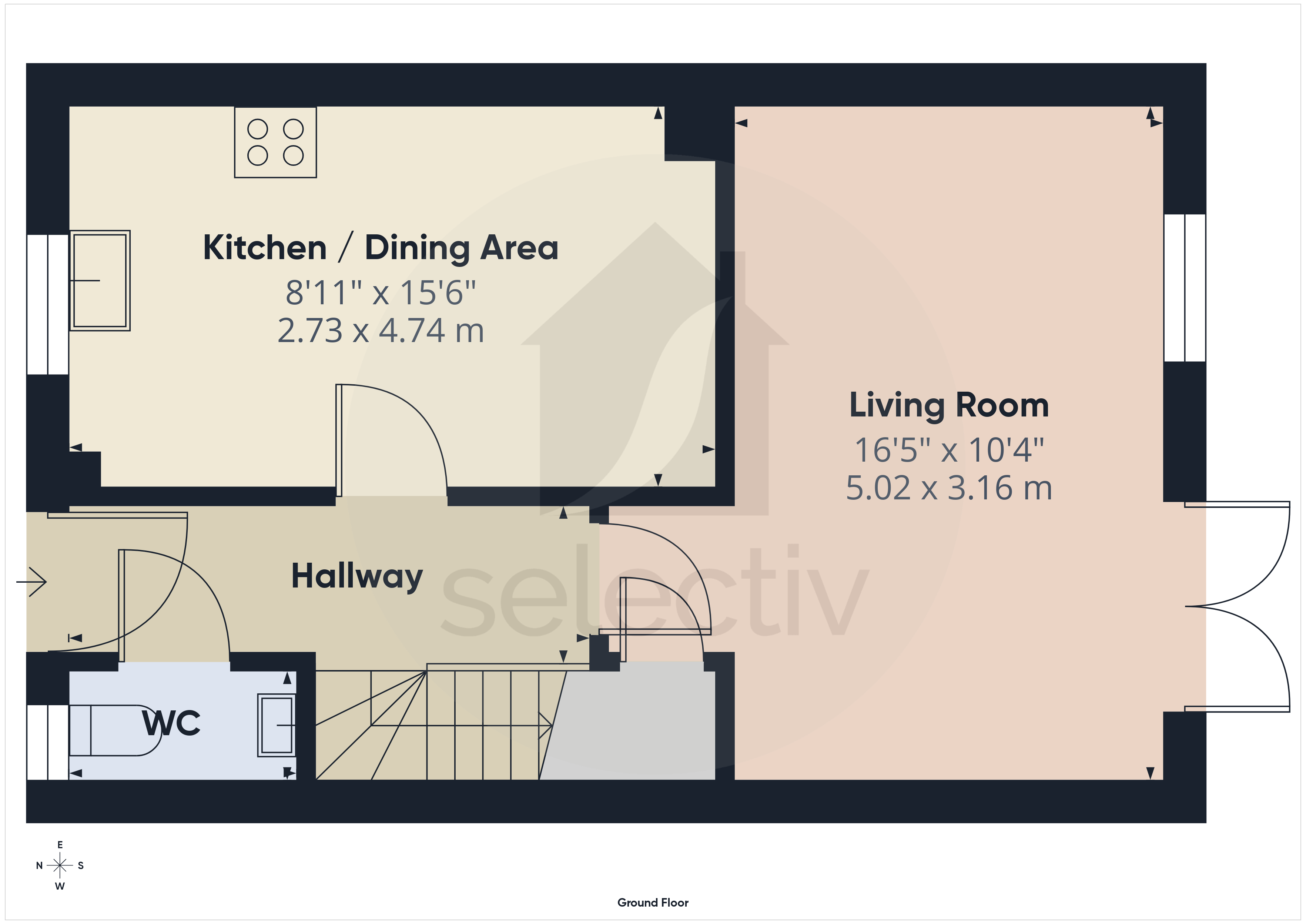 Immaculately styled throughout, the property delivers modern, ready-to-move-into living, with a bright kitchen / dining area to the front, while to the rear is a spacious living room with French doors opening directly onto the garden—creating a great flow for both everyday living and entertaining. A handy ground floor WC completes the layout.