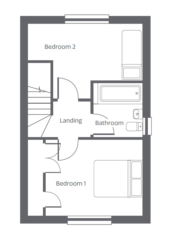 Upstairs, you’ll find two well-proportioned bedrooms and a contemporary family bathroom, finished in clean, modern tones ready to personalise.