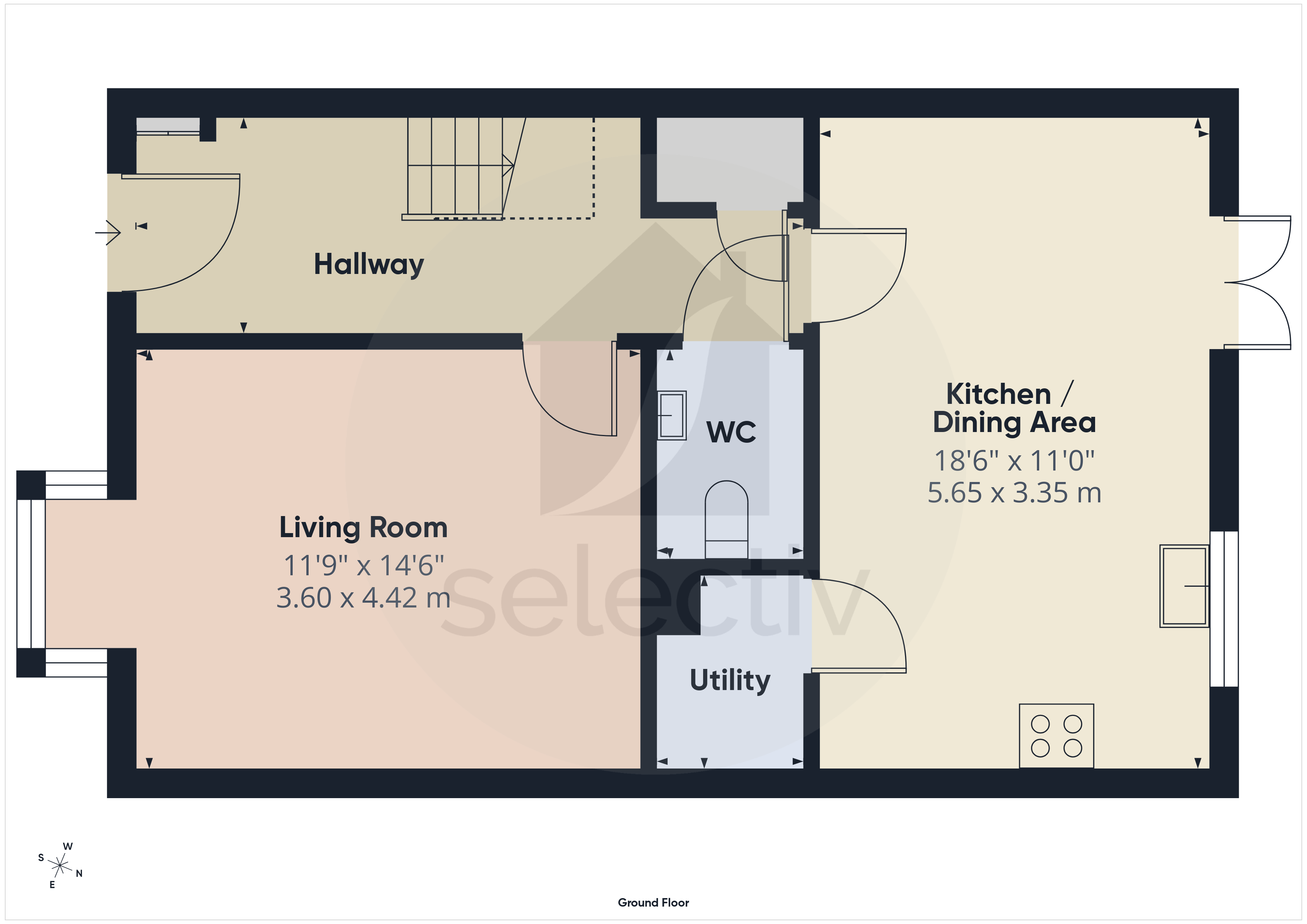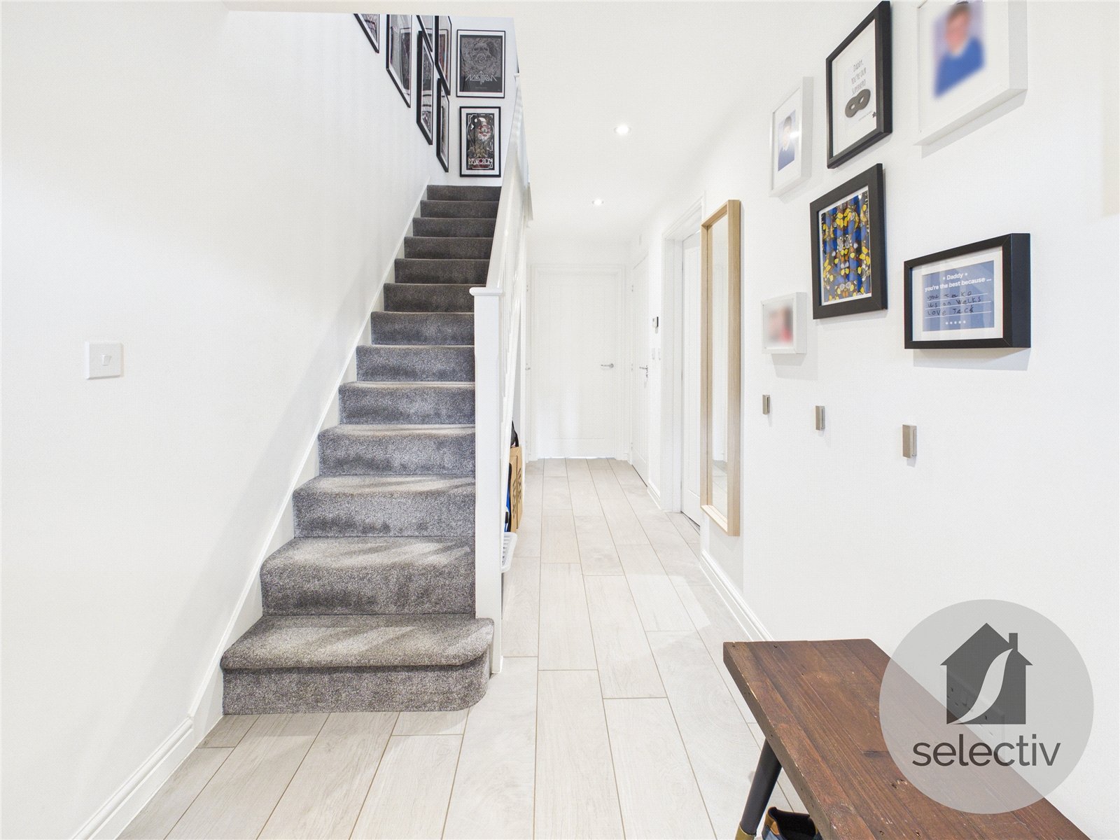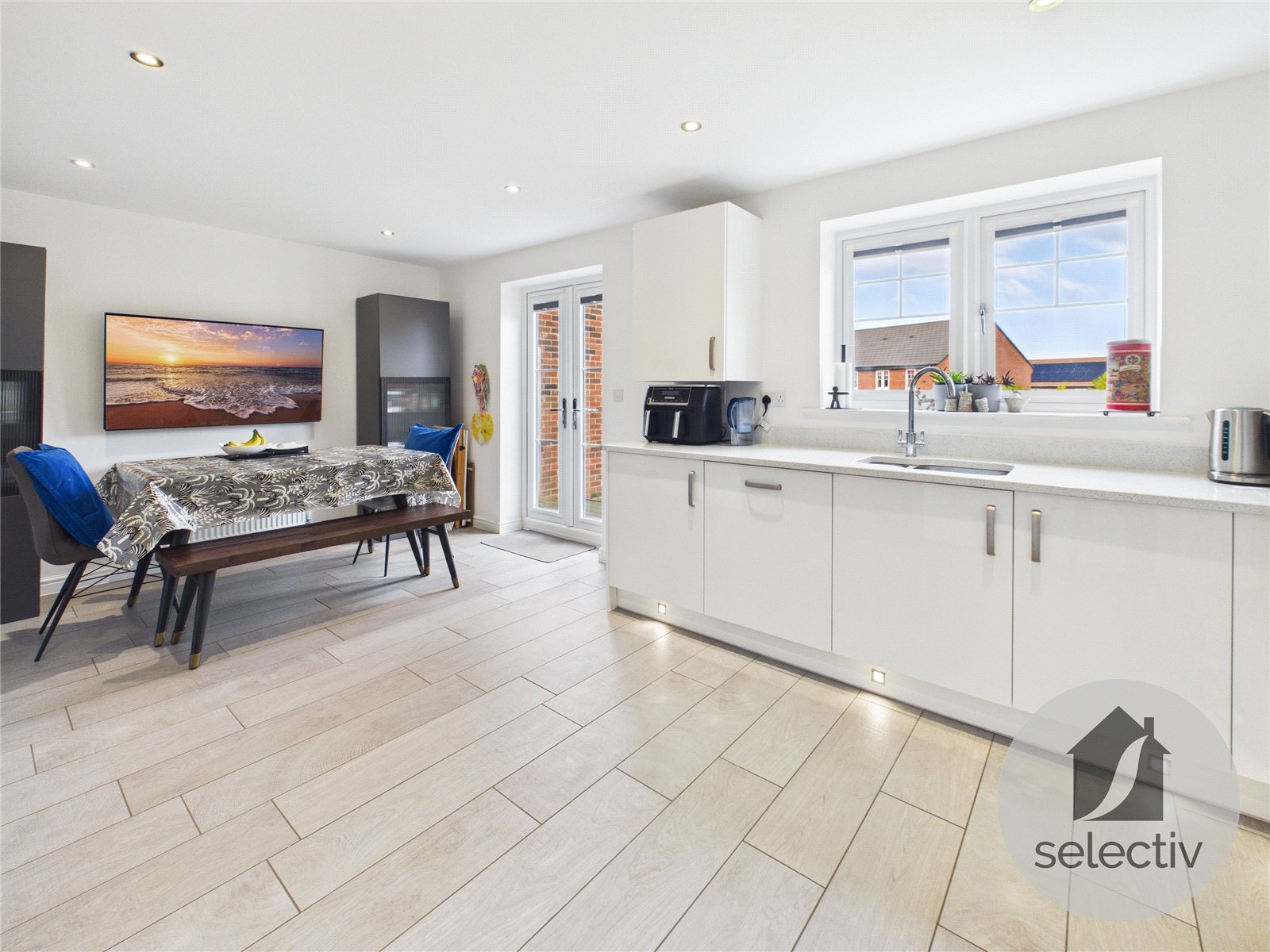 Internally, the home is designed with both space and practicality in mind. A welcoming entrance hall leads through to a bright and comfortable living room overlooking the front garden, while to the rear sits a spacious kitchen / dining area with French doors opening onto the garden, ideal for entertaining and everyday family life. A separate utility room, ground floor WC, and useful understairs storage add further convenience.
