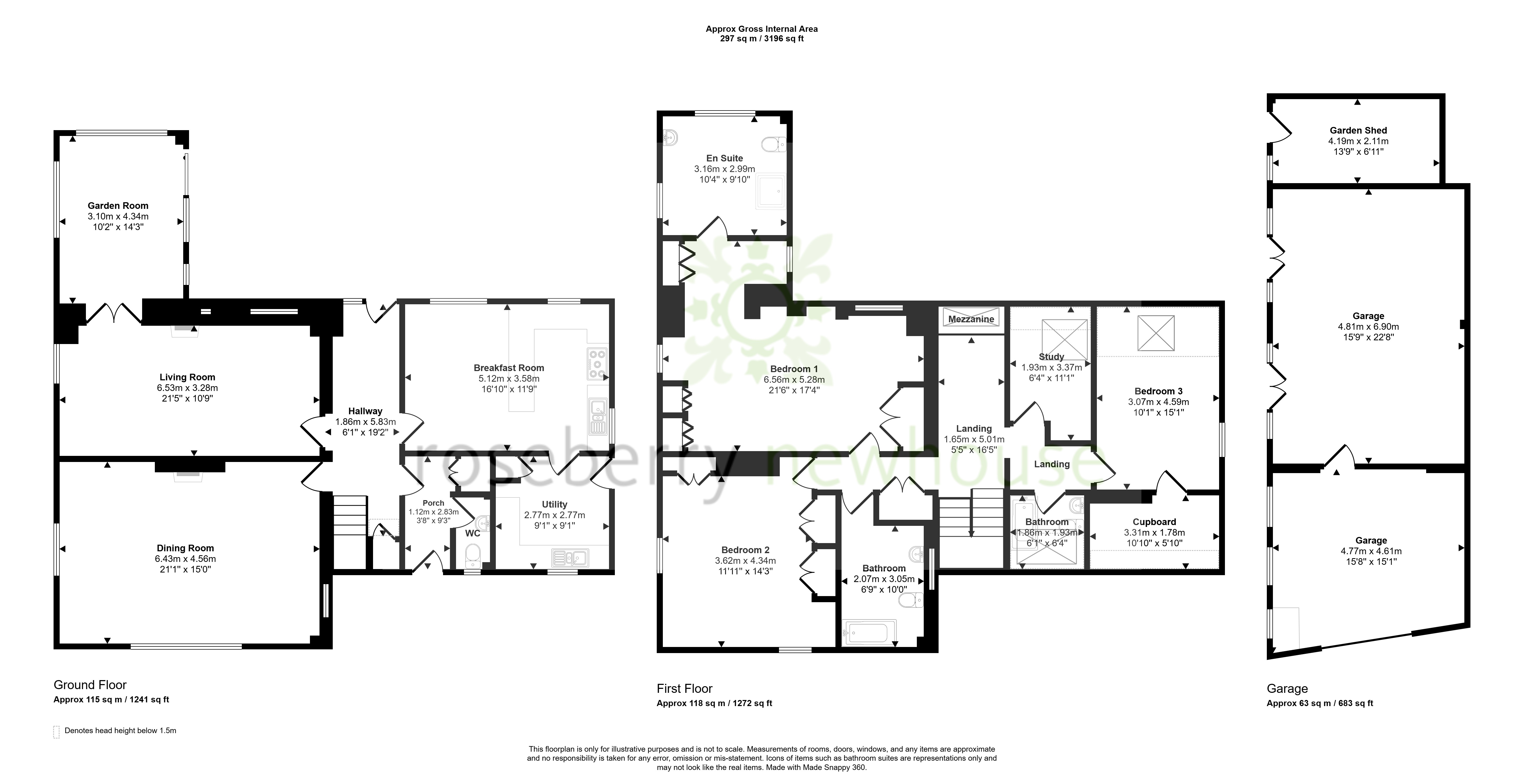 Upstairs, the principal bedroom enjoys a dedicated dressing area and an en-suite shower room. Two further double bedrooms are served by two bathrooms, and a separate study provides a quiet corner for home working.