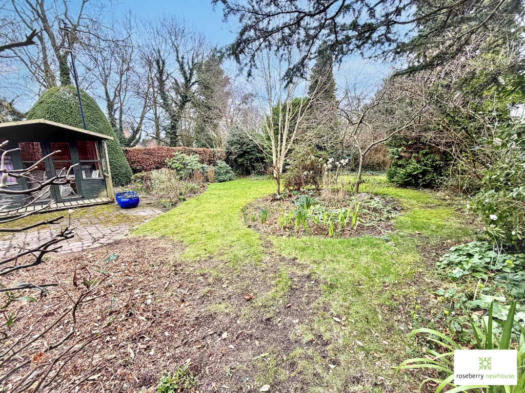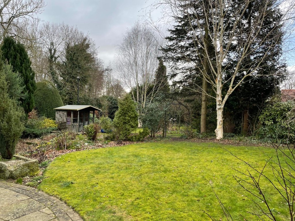 Outside, the gardens deliver a tranquil retreat: deep, established borders, specimen trees and broad terraces create pockets of sun and shade throughout the day. A substantial detached garage/workshop with a vaulted ceiling offers excellent storage and exciting scope for an annexe or studio/home office (subject to consents). A brick garden outbuilding provides additional, practical storage.