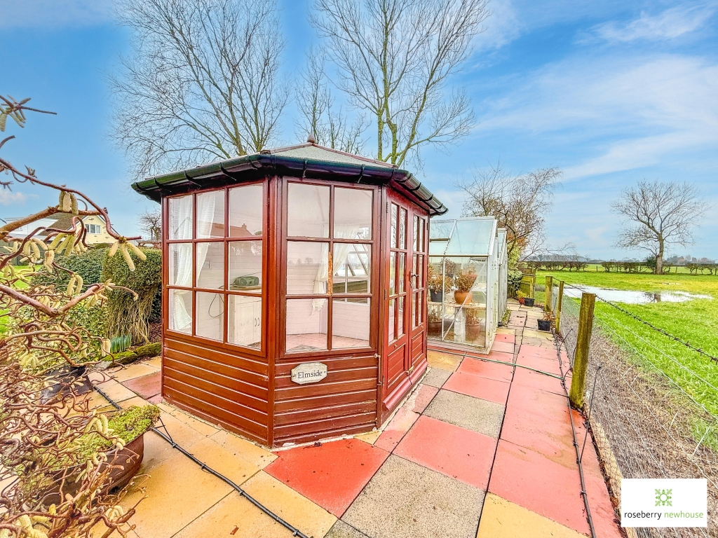 Outside, the property truly comes into its own. The south westerly facing rear garden is beautifully established and meticulously maintained, enjoying sun throughout the day and long into the evening. Well stocked borders frame expansive lawns, while features such as a summer house, greenhouses and multiple sheds cater perfectly to keen gardeners or those seeking a productive outdoor lifestyle. The open aspect ensures enviable countryside views, creating a sense of peace and seclusion rarely found so close to major transport links.