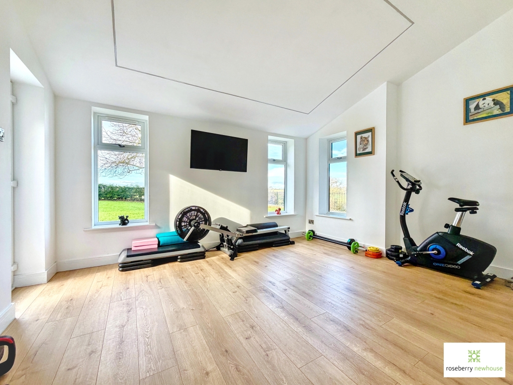 Lane End is an exceptional detached country residence occupying a prime position overlooking the village green in the highly sought-after North Yorkshire village of Low Worsall, just three miles from the vibrant market town of Yarm. Set within approximately 0.65 acres, this superb family home enjoys uninterrupted west-facing views across rolling countryside, offering a rare combination of rural tranquillity, privacy and excellent connectivity. Available with no upward chain, the property presents a wonderful opportunity for families seeking space, lifestyle and community in a picturesque village setting. Designed with modern family living in mind, the home offers generous and versatile accommodation extending to five double bedrooms and an impressive range of reception spaces. The ground floor features a bright and welcoming lounge with wood-burning stove, flowing open plan into a formal dining area, ideal for both entertaining and everyday living. A separate reception room to the front provides flexibility as a playroom, studio or additional sitting room, while a private study offers an ideal work-from-home space. To the side and rear, lies a recently constructed gym with vaulted ceiling and LED lighting and a stunning garden room, also with a vaulted ceiling and doors opening directly onto the decking, creating a seamless connection between indoor and outdoor living. At the heart of the home lies a spacious breakfast kitchen fitted with a comprehensive range of cabinetry, central island with breakfast bar and quality integrated appliances. A guest cloakroom and ample built-in storage throughout are perfectly suited to a busy family life. A double garage with utility area and electric roller door provides further excellent storage and practicality, The property has been well maintained and upgraded, including uPVC double glazing, cavity wall insulation and boarded loft space with retractable access. Upstairs, the bedroom accommodation is equally impressive. The principal suite benefits from a beautifully appointed ensuite shower room and a fully fitted dressing room. Two further double bedrooms are served by a stylish Jack and Jill shower room, while two additional double bedrooms with fitted wardrobes share a luxurious family bathroom complete with Jacuzzi bath, walk-in shower and underfloor heating. High-quality fittings and extensive integrated storage enhance both comfort and functionality. Externally, Lane End stands well back from the village green with a gravelled driveway providing ample off-street parking. Mature trees and hedging offer privacy, while the grounds extend to include a grassed paddock with separate gated access and a timber stable building with twin storage boxes, presenting potential for equestrian or hobby use. The fully enclosed rear garden is secure for children and pets and features a substantial raised composite decking area with LED lighting, ideal for outdoor dining and entertaining, all set against a backdrop of open countryside views. A raised pond and well-maintained lawns complete the idyllic setting. Low Worsall offers a welcoming rural community with a village hall, social events and a traditional public house, while nearby Yarm provides boutique shopping, cafés, restaurants, medical facilities and highly regarded schooling. With excellent road links to surrounding towns, Lane End delivers the perfect balance of countryside living and everyday convenience, making it an outstanding choice for families seeking a village lifestyle.