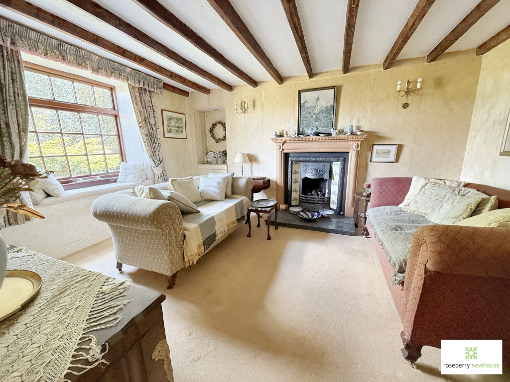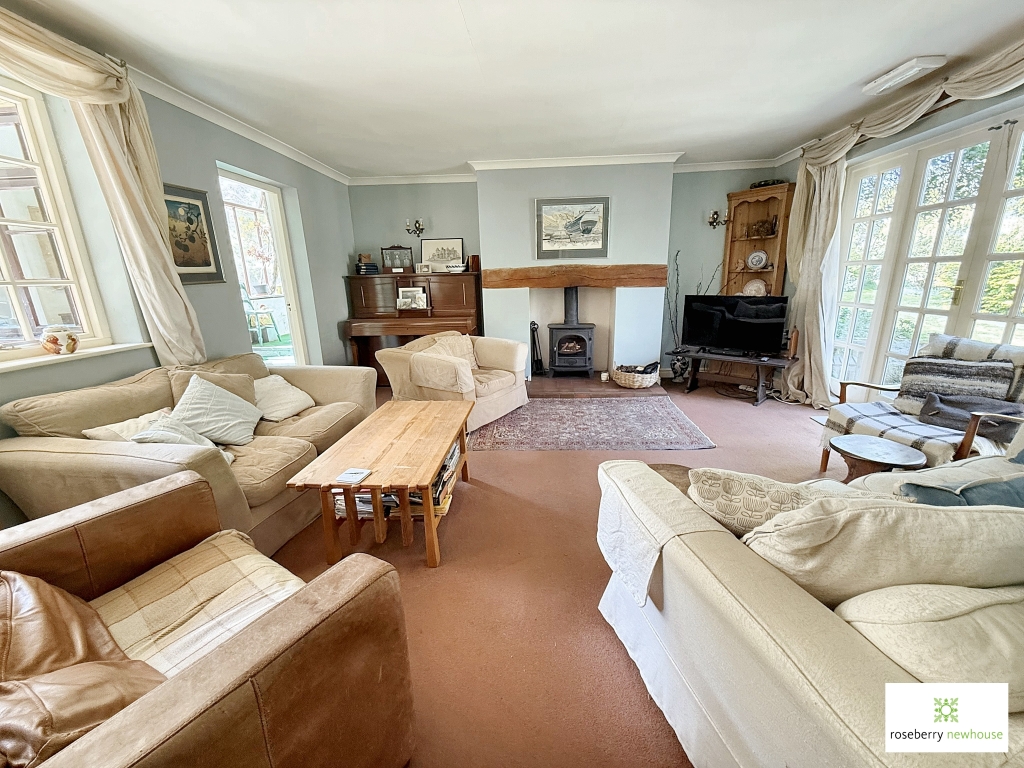 The main house is steeped in character, with an inviting entrance hallway leading through to a traditional sitting room centred around an impressive inglenook fireplace with log burner. A separate living room with open fire provides an additional cosy retreat, while the farmhouse-style kitchen, complete with AGA, forms the heart of the home. A vaulted dining room and spacious family room, both featuring wood-burning stoves, create superb spaces for entertaining and everyday living, complemented by a practical utility room and cloakroom.