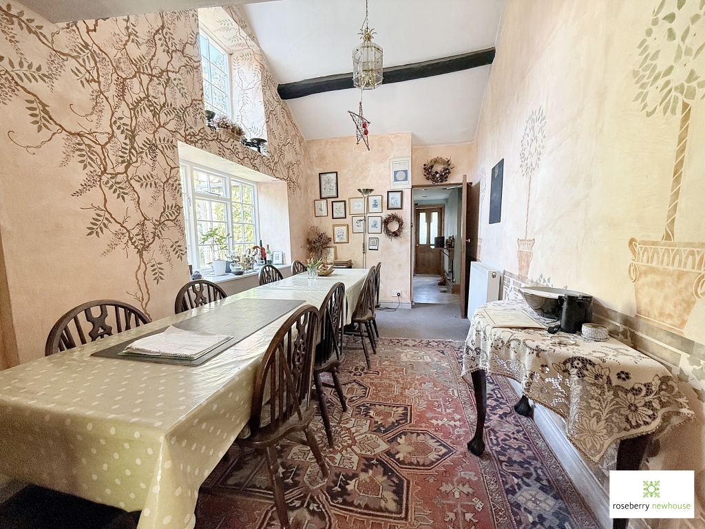A particular highlight of Beacon Guest Farm is the extended guest wing, accessed via a distinctive vinery-style hallway that adds both atmosphere and individuality. This wing provides six bedrooms, each with en suite facilities or access to a separate shower room, offering excellent flexibility for multi-generational living or the opportunity to re-establish a guest house or bed and breakfast.