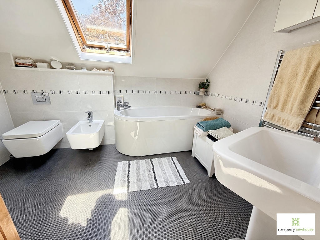 To the first floor, the principal accommodation offers four well-proportioned bedrooms, served by a modern family bathroom with separate shower—successfully combining period charm with contemporary comfort.