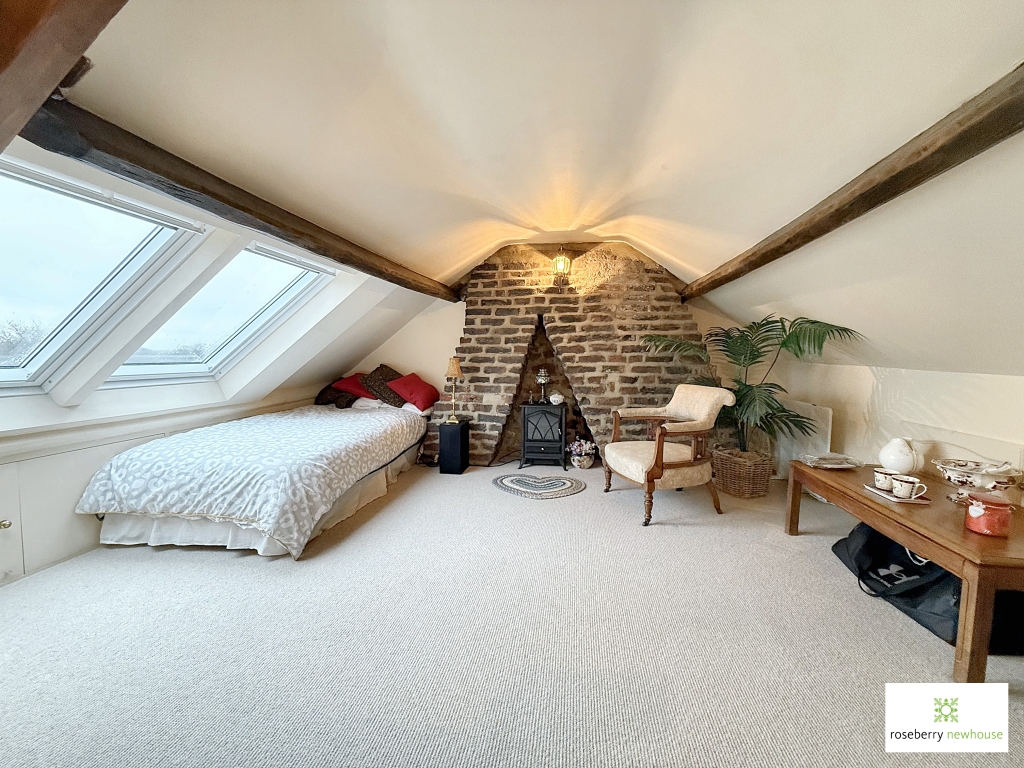 A staircase leads from the master bedroom to the attic space with beams offering an ideal study or dressing room space with velux windows enjoying views across the hills.