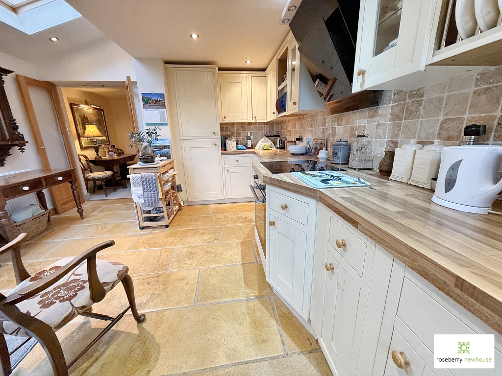 On entering the property you are welcomed into an open plan living room with beams and a multi fuel stove. The living area is open plan to the dining area with doors to a modern kitchen breakfast with vaulted ceiling, integrated appliances and French doors to the garden.