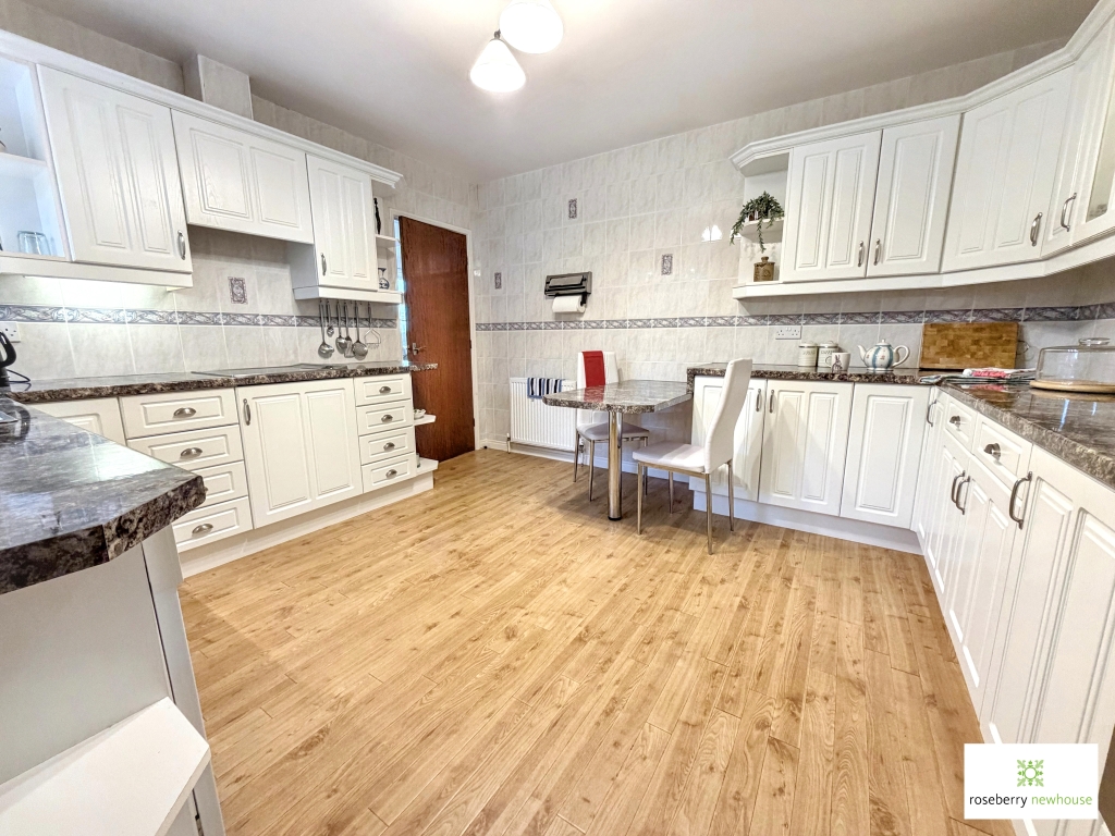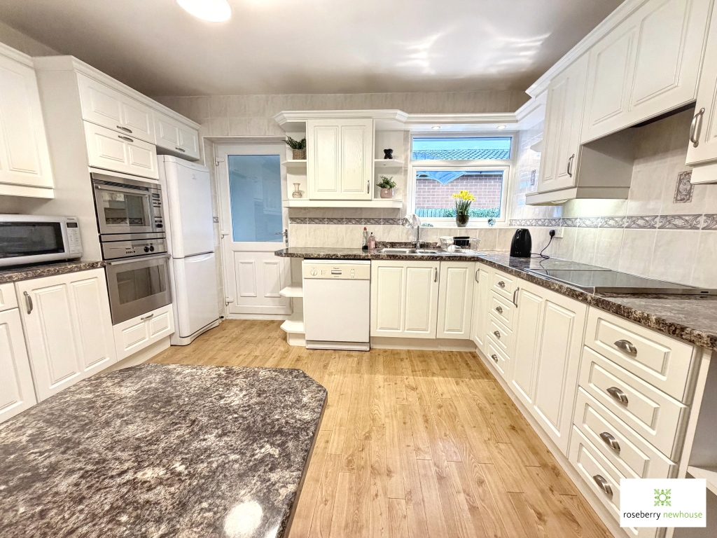 A modern kitchen breakfast room is well appointed with integrated appliances and ample storage, and in turn leads to a useful utility space and ground floor cloakroom, adding further convenience.