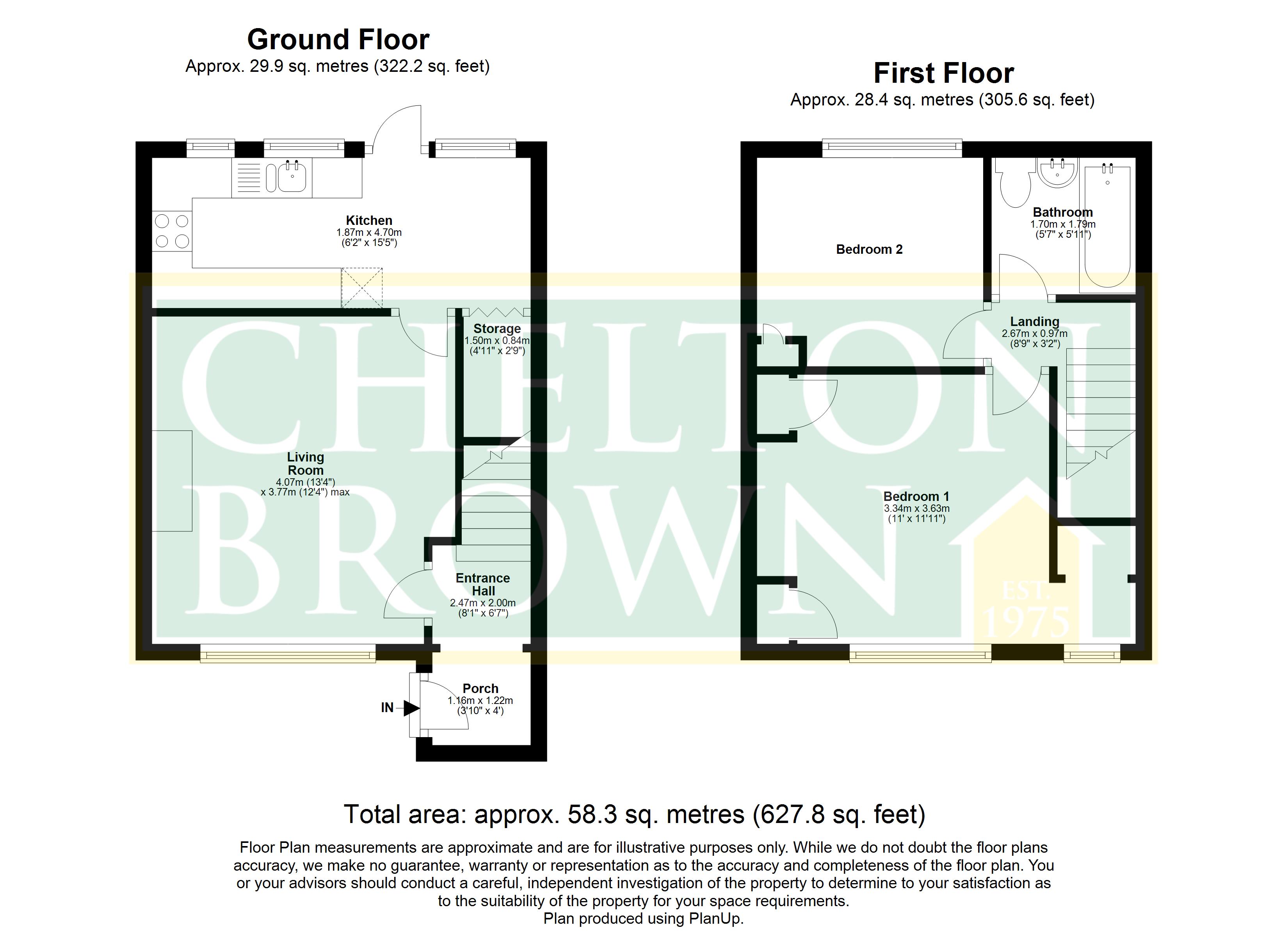 Landing 8'9" x 3'2" (2.67m x 0.97m). The landing gives access to both bedrooms and the family bathroom.