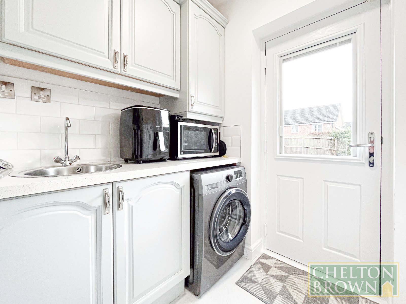 Utility 6'1" x 5'11" (1.85m x 1.8m). Conveniently situated to the rear of the kitchen, the utility room offers matching eye level and base units and worktop to those in the kitchen. There is ample space and plumbing for free standing appliances and sink. Doors lead to the cloakroom and rear garden