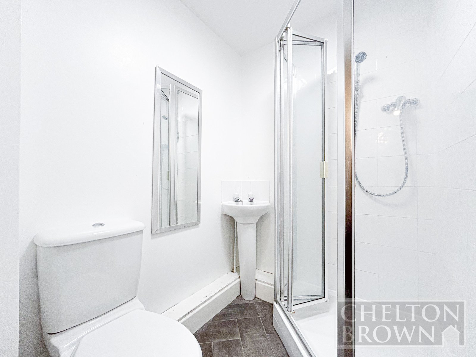 There are two well-proportioned double bedrooms. The primary bedroom features a private en-suite shower room for added convenience and comfort. The second double bedroom is equally spacious and is served by a stylish main bathroom, fitted with a contemporary white suite including a bath with shower over, wash basin, and WC.