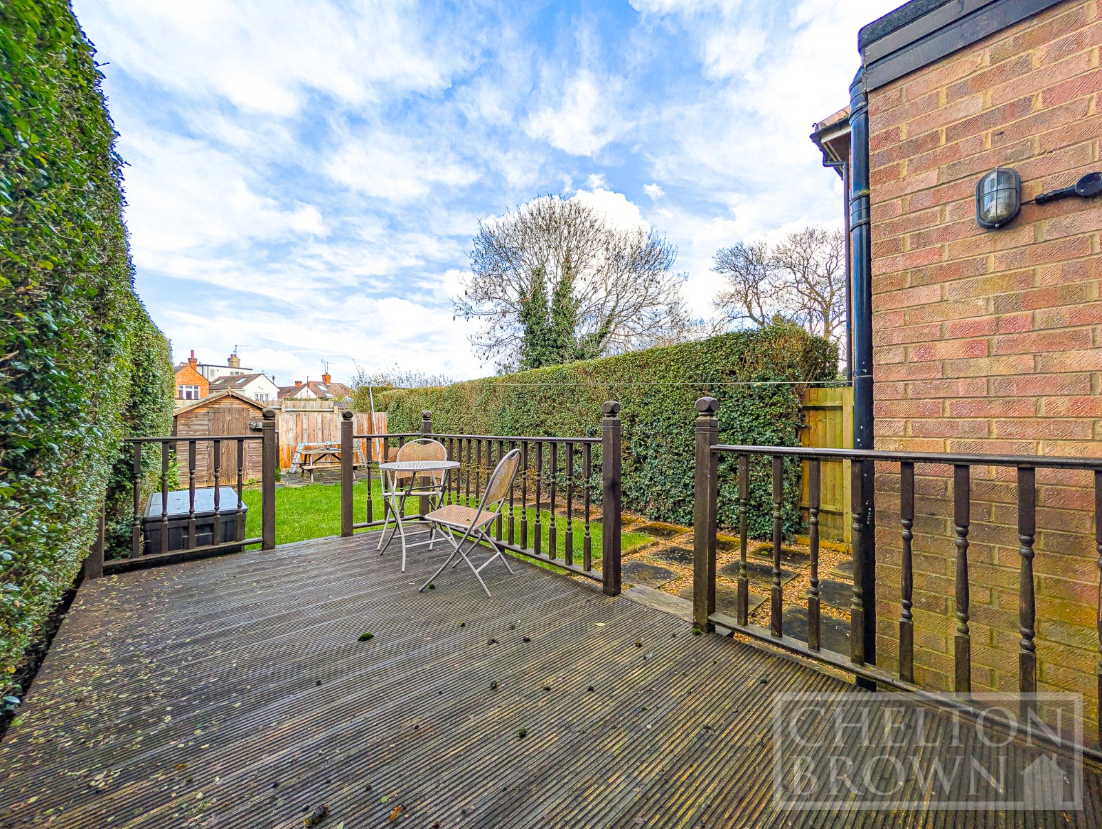 Outside, the property enjoys offroad parking to the front, while the enclosed rear garden offers plenty of space for children to play or adults to unwind. It features a lawn area, raised decked section, paved terrace, and a powered shed, along with an additional patio at the far end of the garden, perfect for outdoor dining or creating a quiet seating spot.