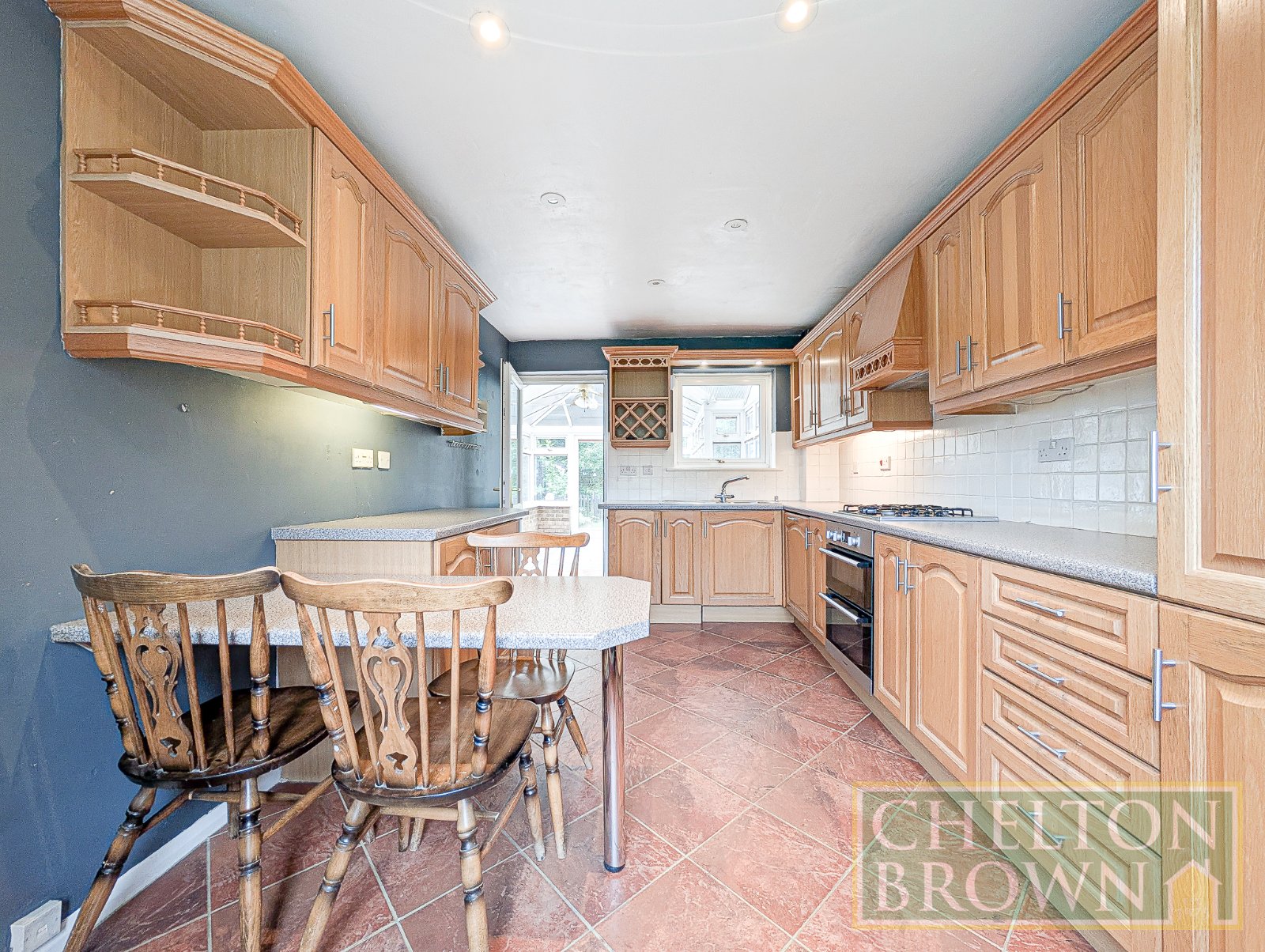 The open-plan kitchen/diner runs the full depth of the property, offering ample worktop space and an abundance of cupboard storage perfect for keen cooks and busy households alike. A standout feature is the adjoining conservatory, accessed via a glazed door from the kitchen. This expansive and versatile space overlooks the rear garden and is ideal for entertaining, dining, or simply relaxing with a view of the outdoors.