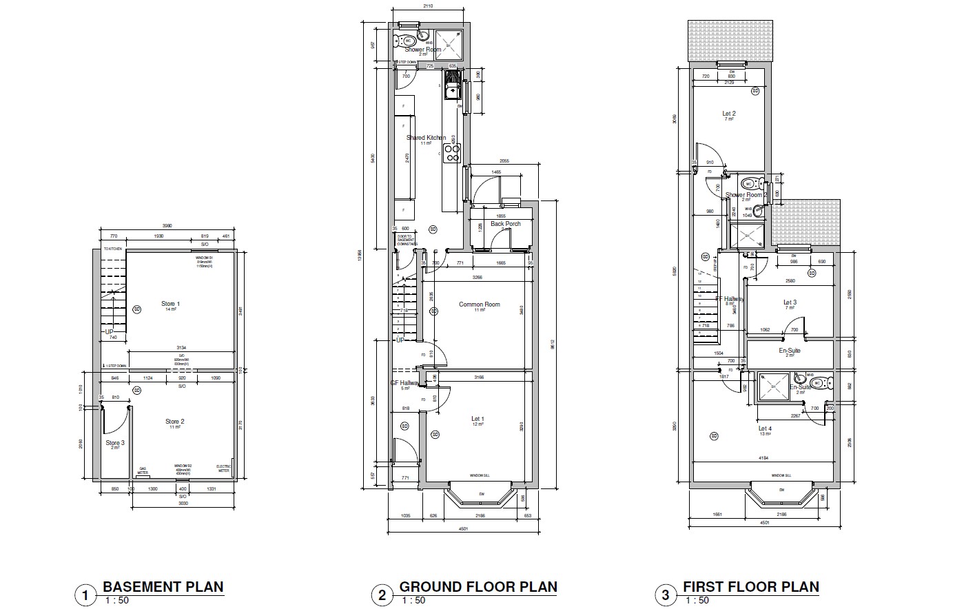 The ground floor accommodates Room 1, the kitchen, living space, and access to the basement. On the first floor, you'll find Rooms 2, 3, & 4.