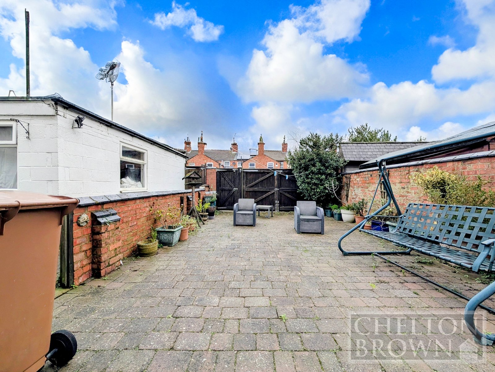Outside there is a private, secure courtyard garden with gates leading to the rear service road.