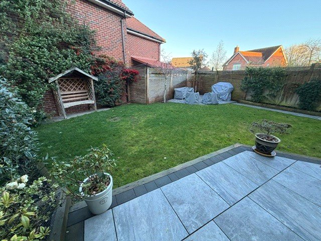 Rear A lovely rear garden which has been landscaped by the current vendors with a shaped paved patio area accessed directly to the rear of the property and accessed from the dining area. This in turn leads to a paved pathway to one side of the garden leading to a further shaped paved patio area to one corner. The remainder of the garden is mainly laid to lawn with a variety of planted shrubs and plants. The garden is enclosed by timber fencing with an access gate to one side leading to the driveway.