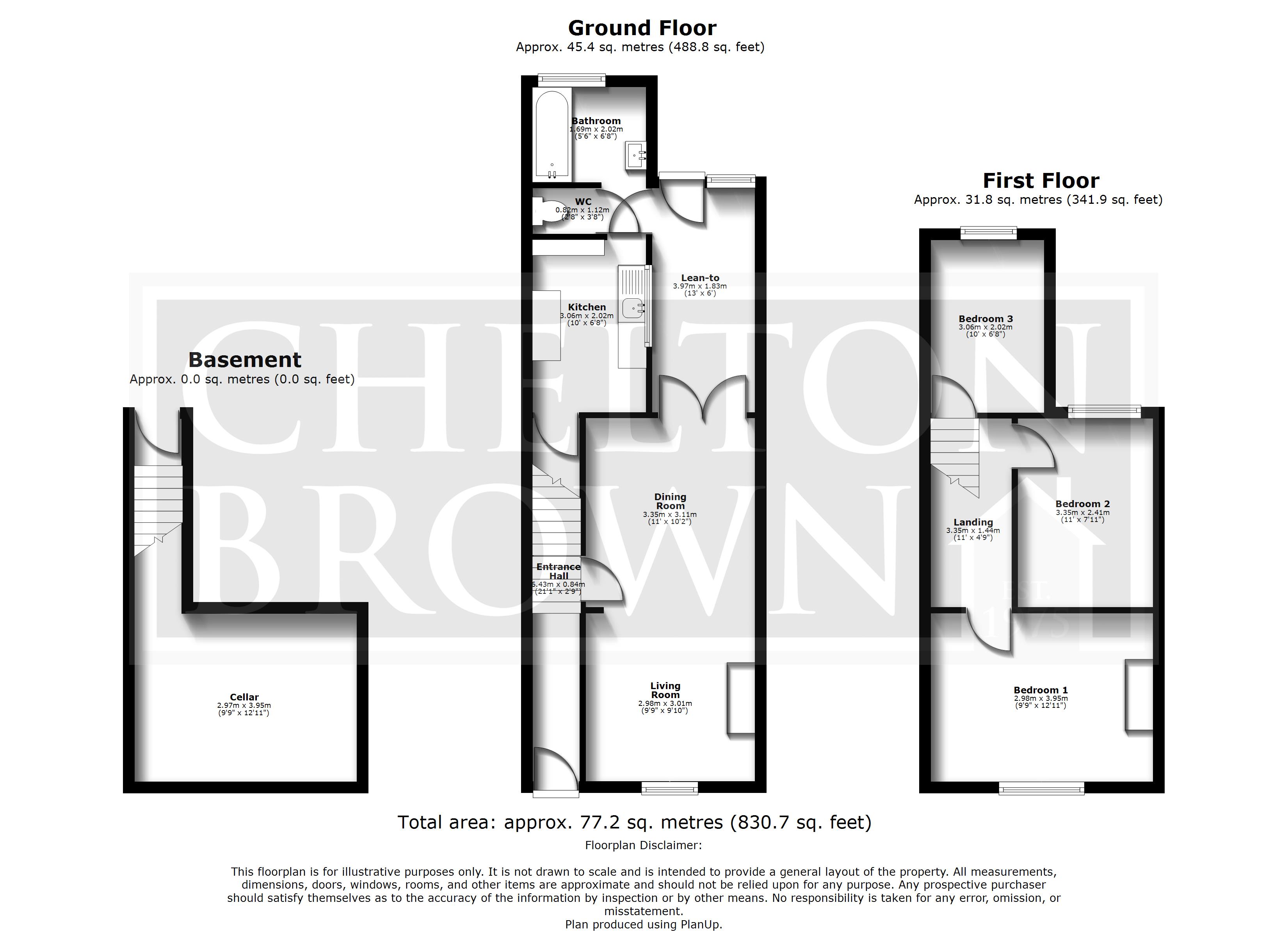 Cellar 13' x 9'9" (3.96m x 2.97m).