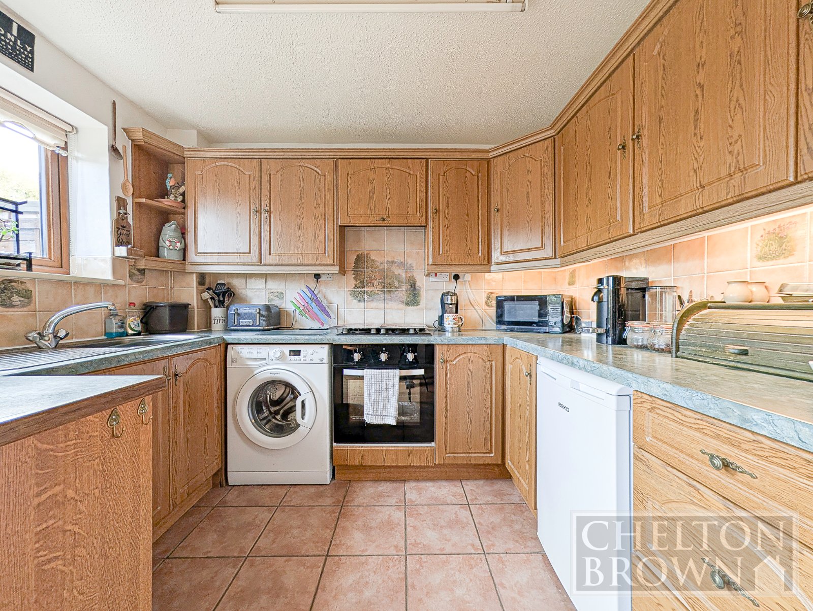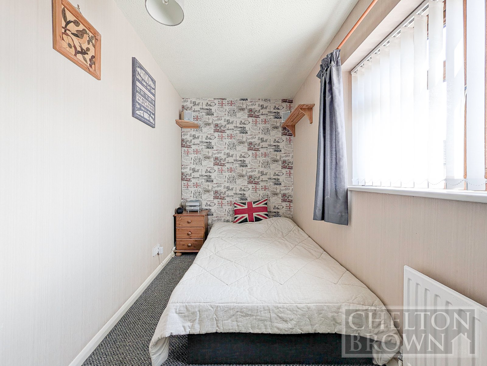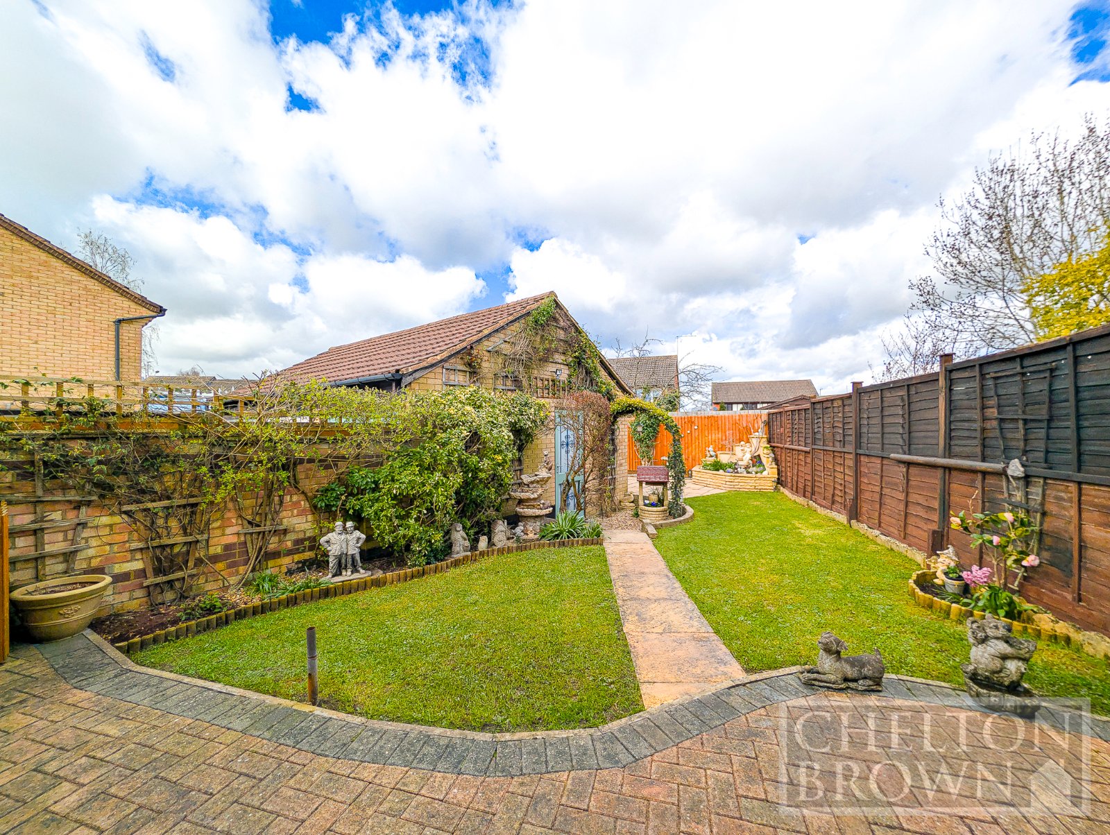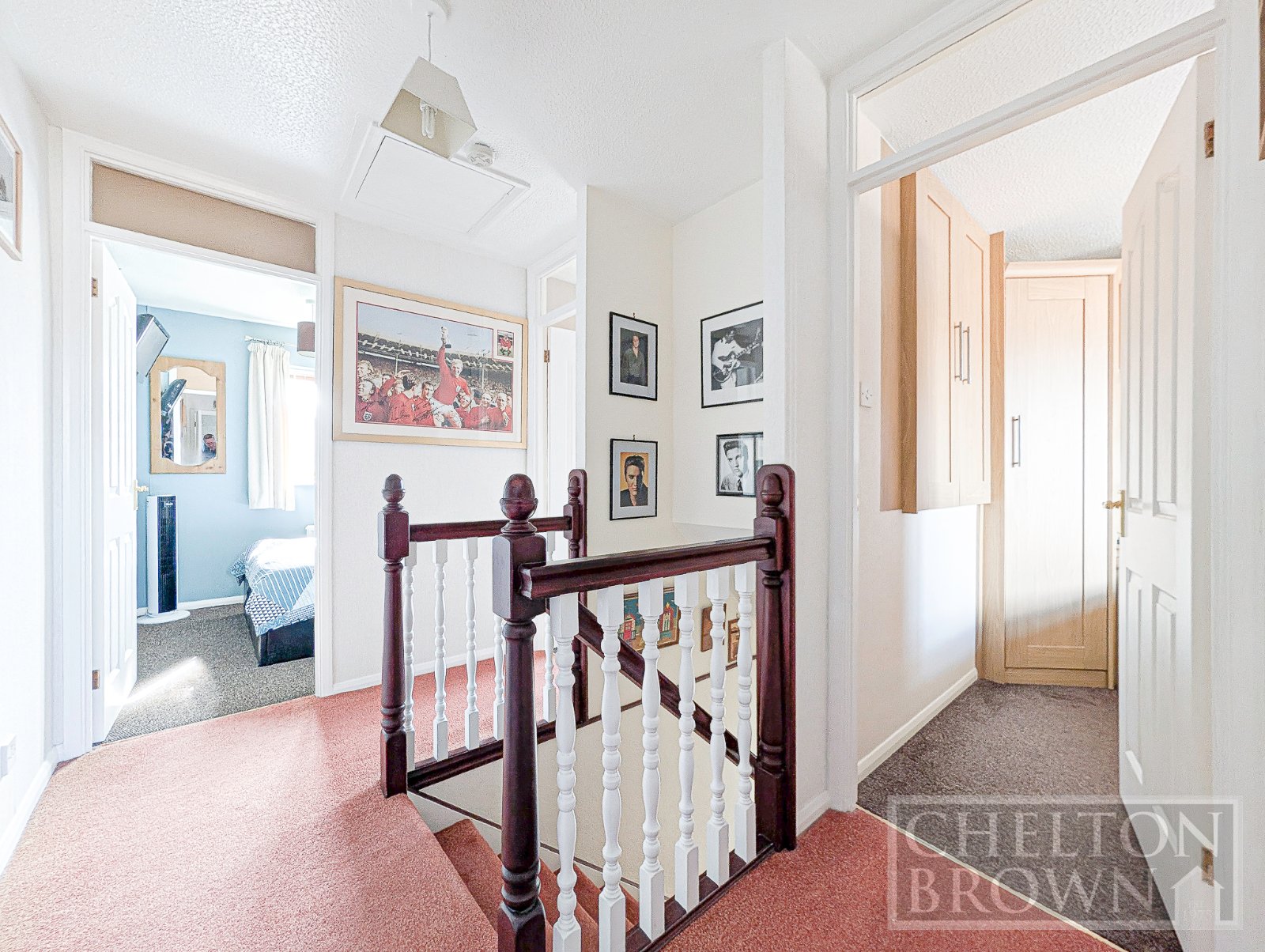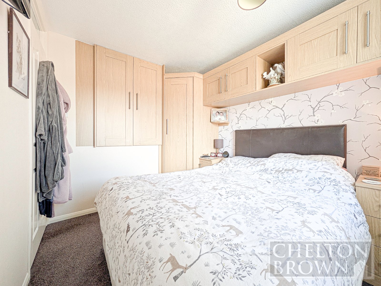 Upstairs, a roomy landing gives access to all three bedrooms and the beautifully updated family bathroom. The primary bedroom features extensive built-in wardrobes and enjoys garden views. Bedrooms two and three are both tastefully decorated, offering lovely outlooks over the park and the peaceful cul-de-sac; bedroom three also benefits from excellent builtin storage.