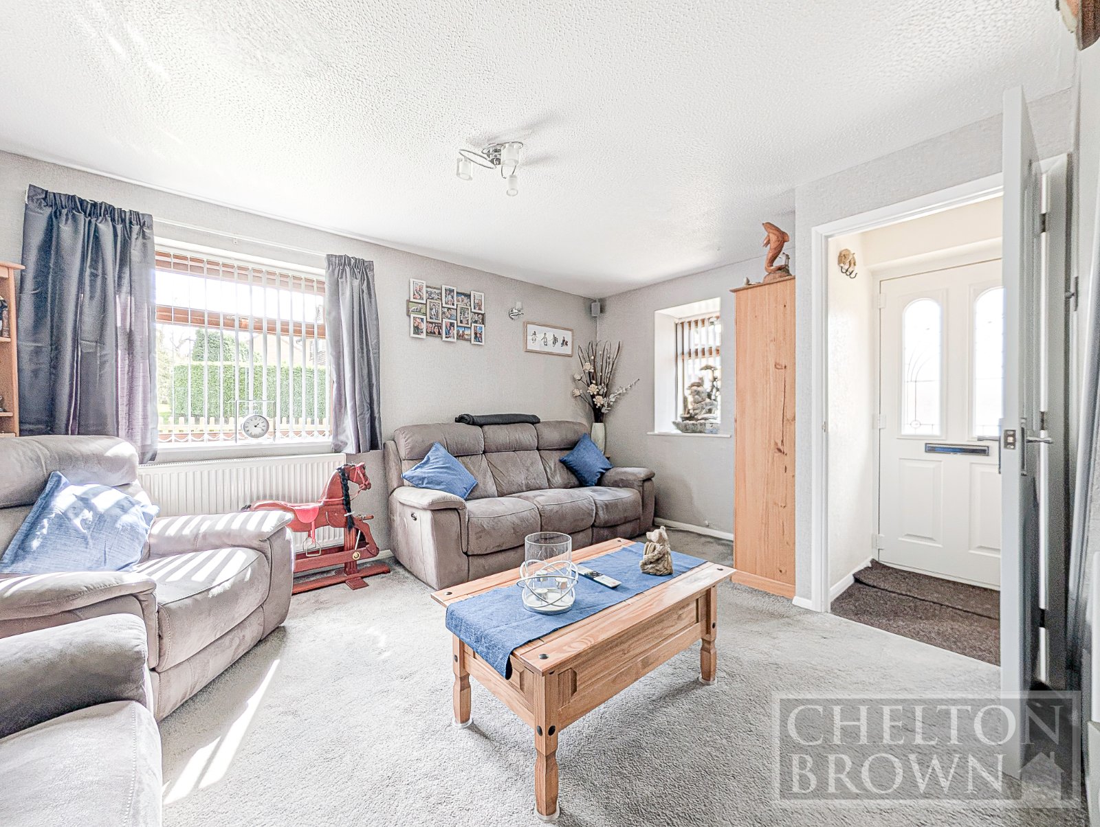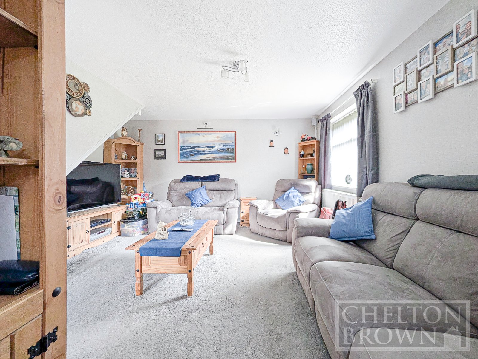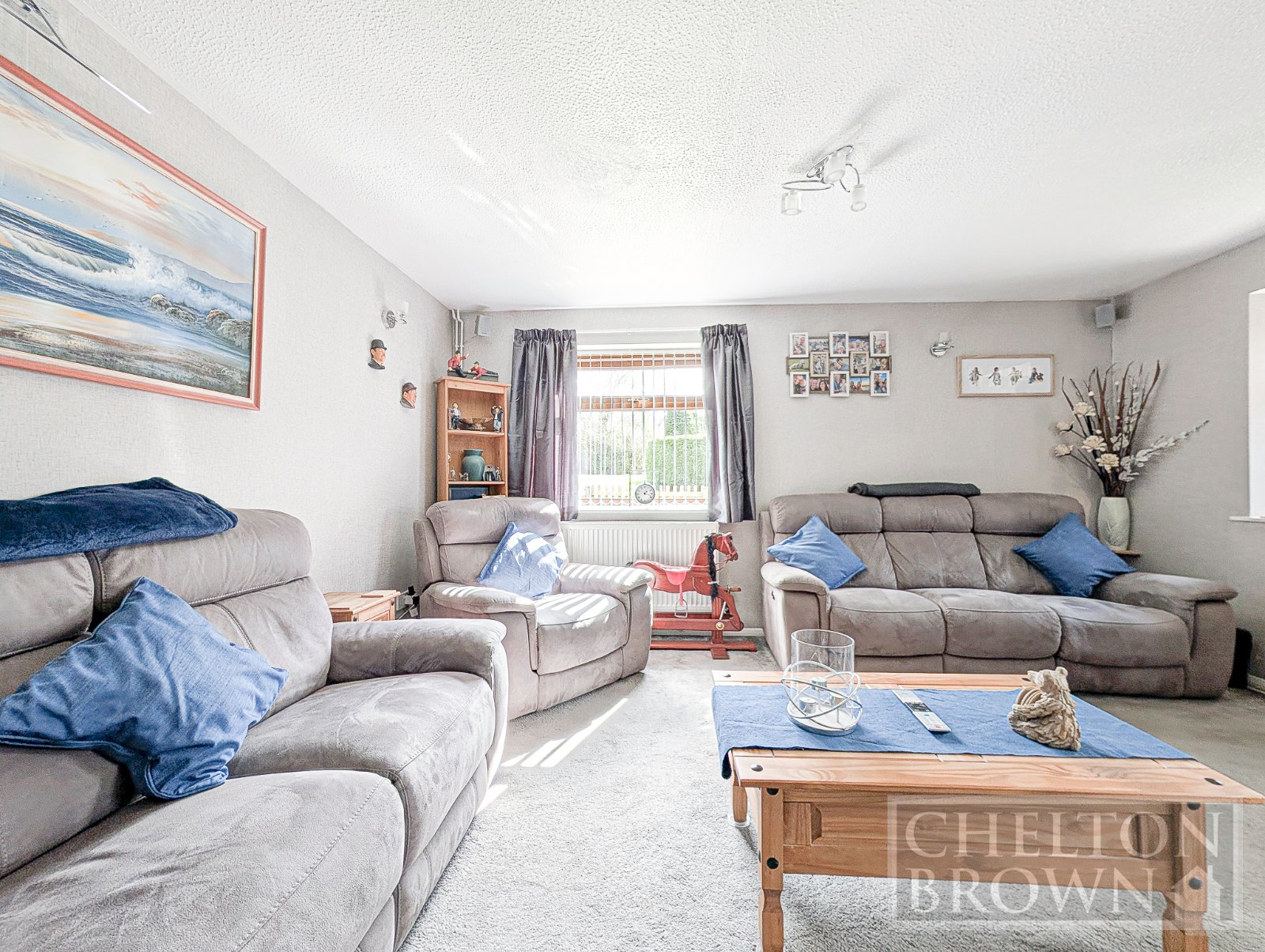 Stepping inside, the bright and airy entrance hall immediately gives a welcoming feel. The spacious living room benefits from dual aspect windows, filling the space with natural light and offering pleasant views over the green spaces to the side of the home.