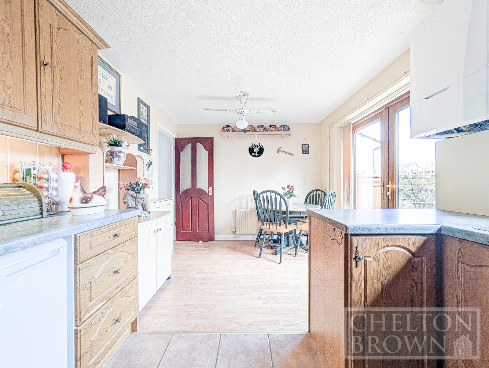 Positioned at the rear, the kitchen/diner provides an ideal setting for family meals and entertaining. The kitchen features ample storage and generous worktop space, while the dining area is enhanced by large French doors that open directly onto the garden, creating a seamless indoor/outdoor flow.