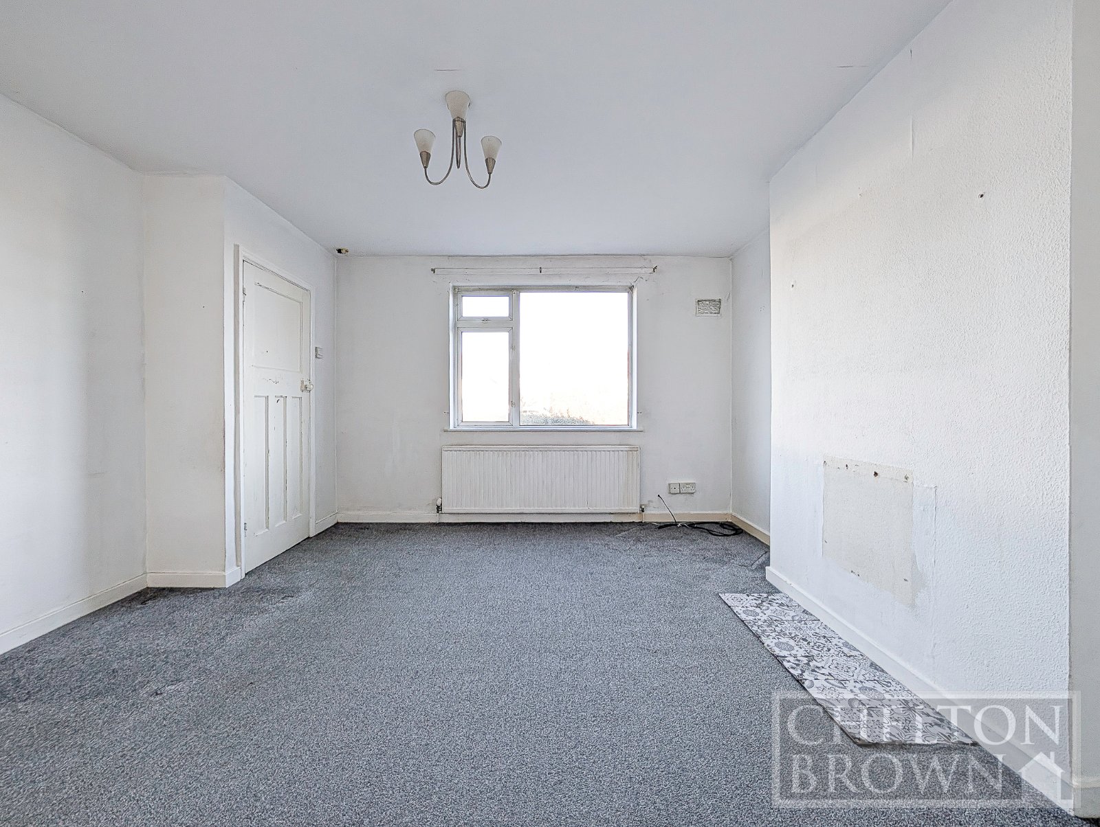 On arrival, you are greeted by a generous front garden set in an elevated position above the road, providing the home with impressive, far-reaching views across open countryside. Stepping inside, the entrance hall gives access to the staircase ahead, with the door to the living room on your left.