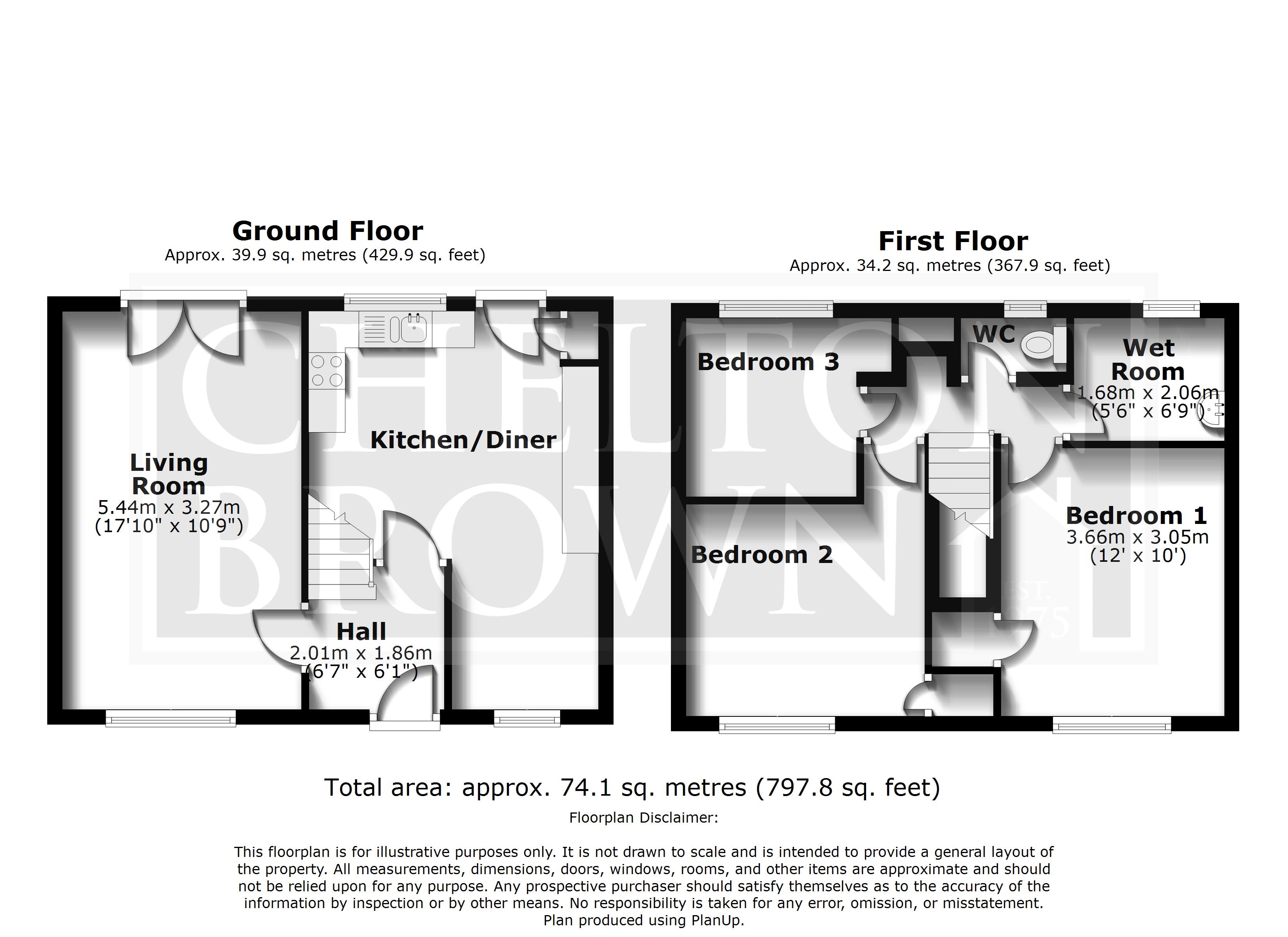 Upstairs the property has two double bedrooms, both with a built in cupboard, good size single bedroom, wet room and seperate toilet.