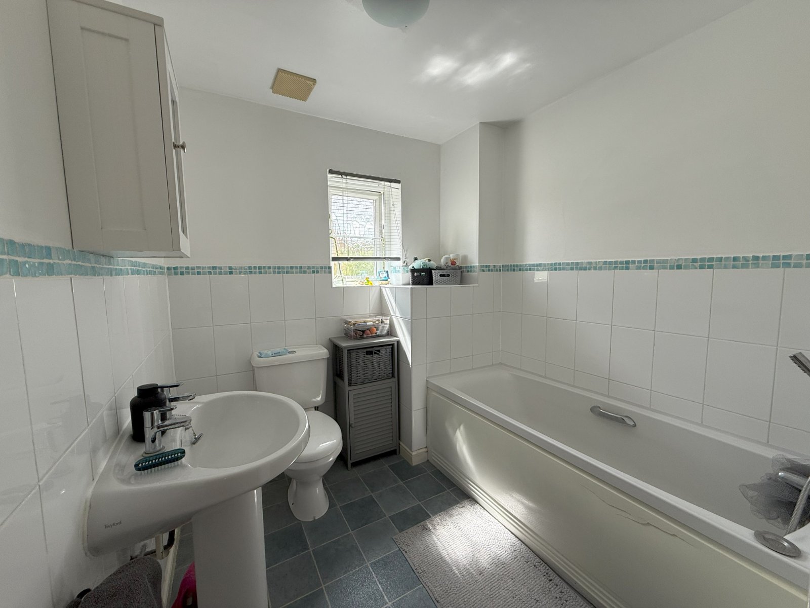 This three-bedroom semi-detached house is available to own a 50% share. The house is deceivingly spacious and has a small hallway, good size living room, kitchen diner, downstairs WC and rear porch.