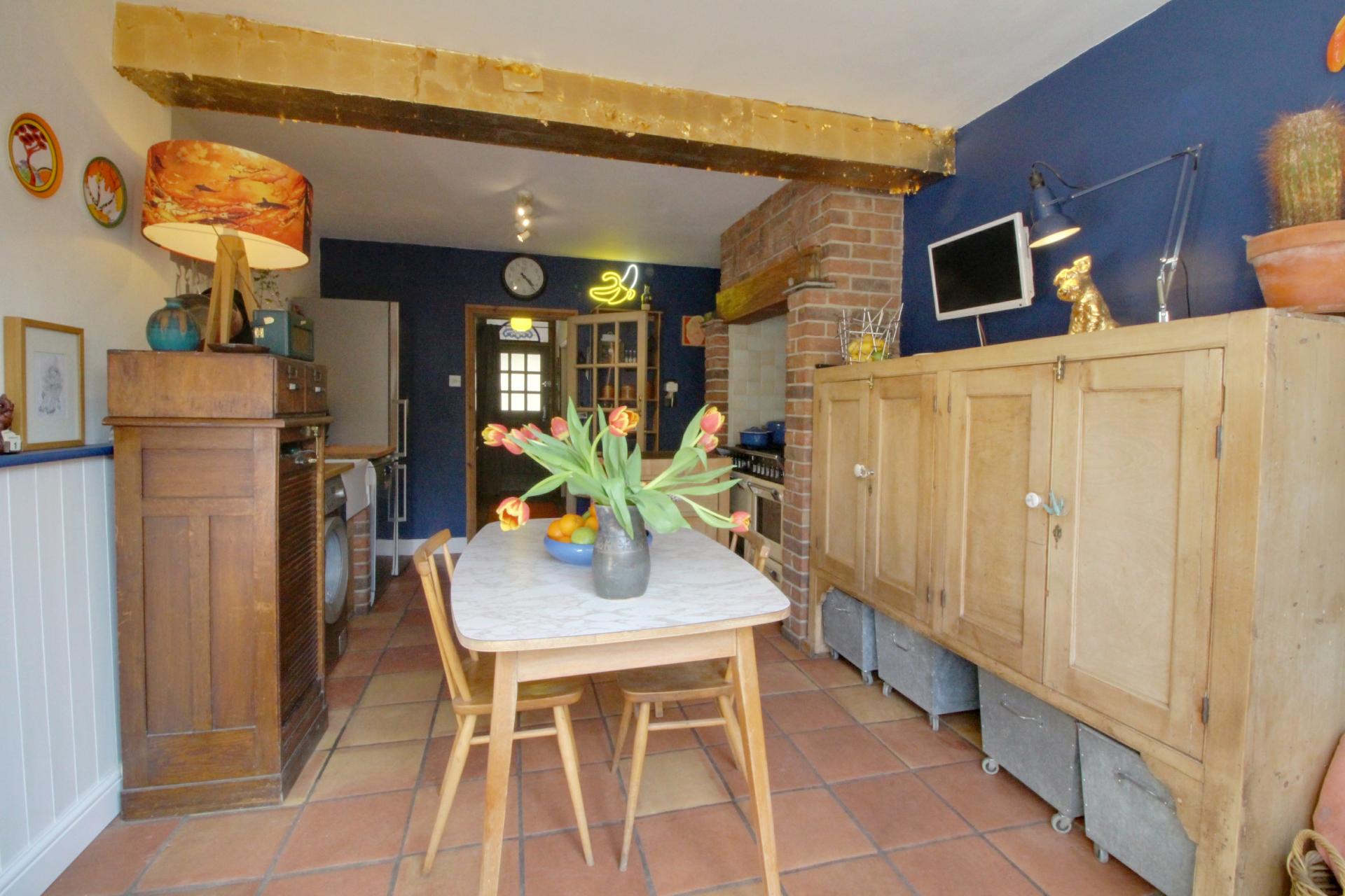 Extremely rare to the market is this beautifully presented two bedroom period cottage. Dating back to 1883 and situated on the highly regarded Vineyards Road, this period property offers comfortable and flexible living. The accommodation consists of: Entrance porch, stable style door leading to entrance hallway, study area, living room with wood-burning stove, kitchen breakfast room with door leading to the private terrace. Upstairs there are two double bedrooms, one with original fireplace, and an excellent sized bathroom. The bedroom at the rear has beautiful views over open rolling countryside. To the exterior there is a patio area, sun terrace and a garden room with a shower room and toilet. The remainder of the garden is laid to lawn with mature shrubs and trees, with a vegetable plot and large garden shed. The property backs onto open fields. To the front of the property there is off street parking for two cars.