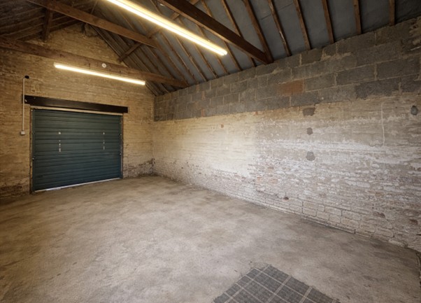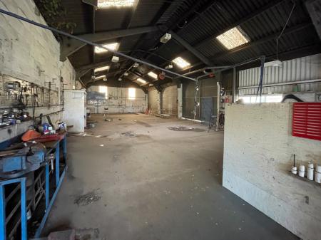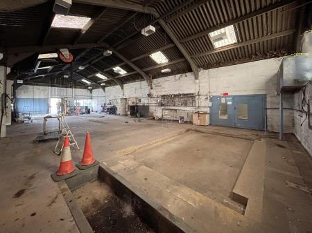 WORKSHOP: 23m x 8.7m, external eaves of about 3.9m, sliding door at north end and on west side, together with 2 other roller shutter doors, concrete floor with pit, sodium lights, double glazed windows, and door off to compressor room. The building has a high level internal oil tank and exhaust extracting system ducting in-situ, and on a gross internal floor area basis extends to about 200m² (2,153 sq.ft.).