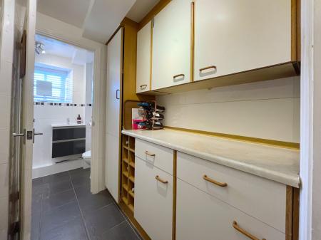 UTILITY ROOM: 1.46m x 2.24m with worktops and plumbing for washing machine. Tiled floor