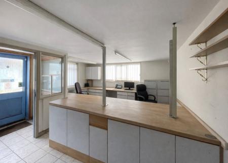 The workshop is an Atcost building, built in the mid 1960’s, and has a concrete frame with part brick walls, part corrugated sheet clad over, and has a single skin corrugated sheet roof with roof lights.