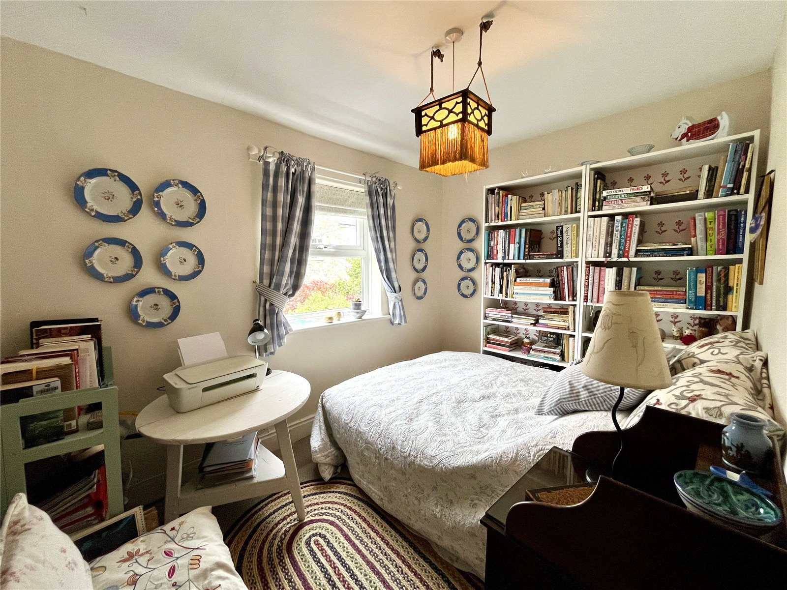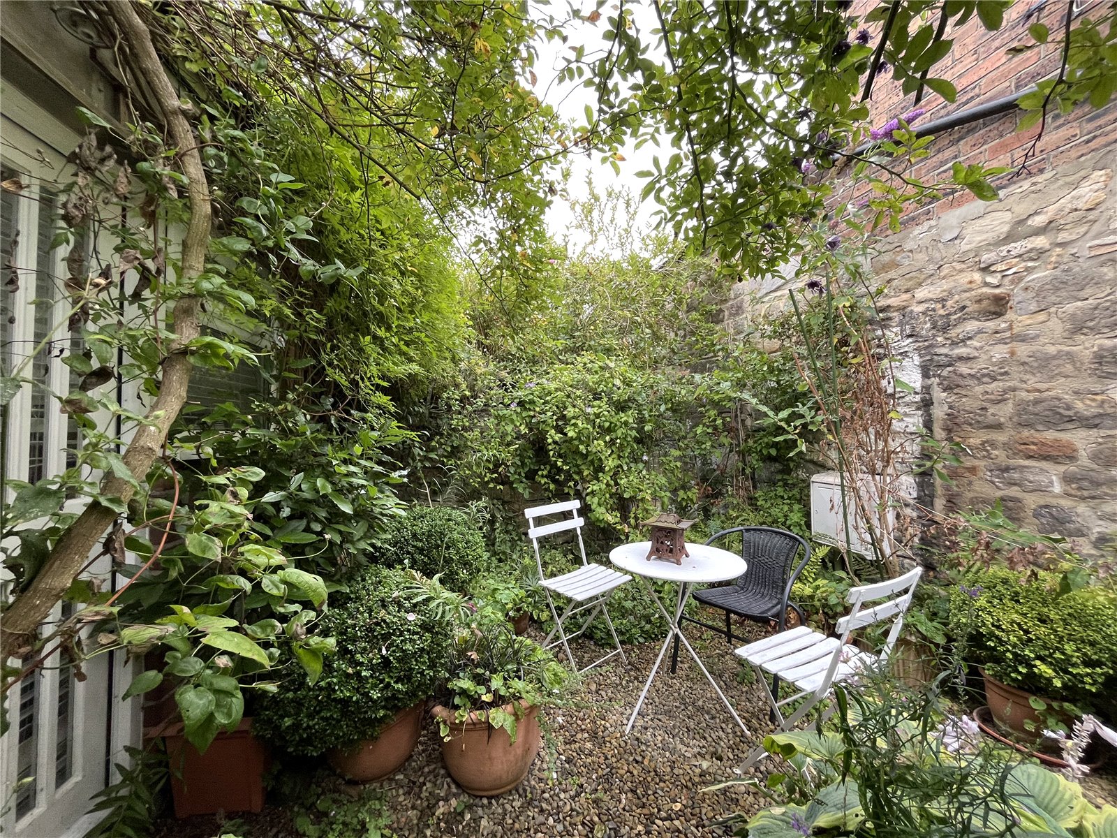 A thirty second walk down a shared pathway are the gardens. Enclosed by high hedging, comprising wild garden areas, bushes, shrubs, flower beds, decked patio and small garden pond. There are very pleasant views to be gained from the patio area.