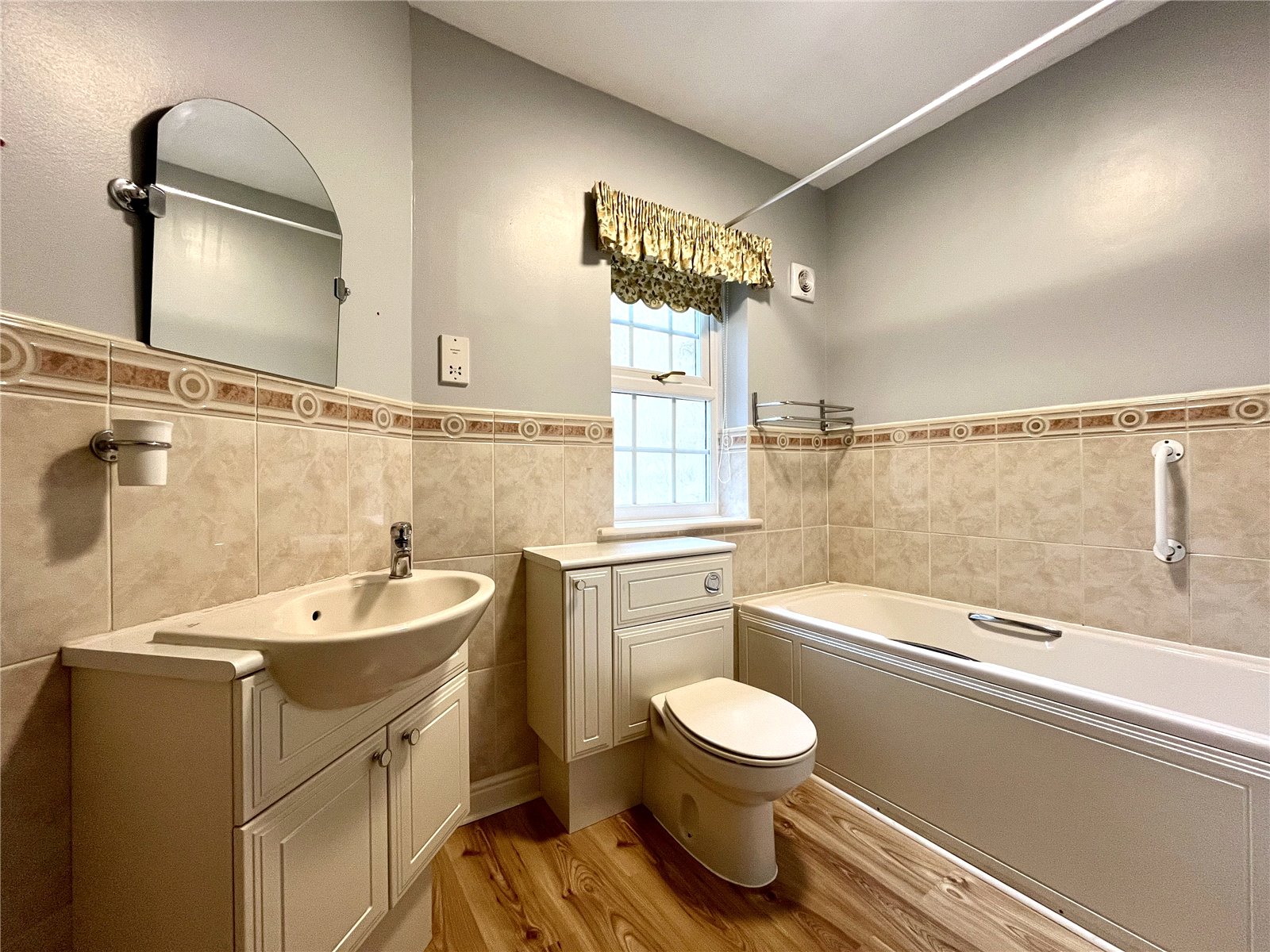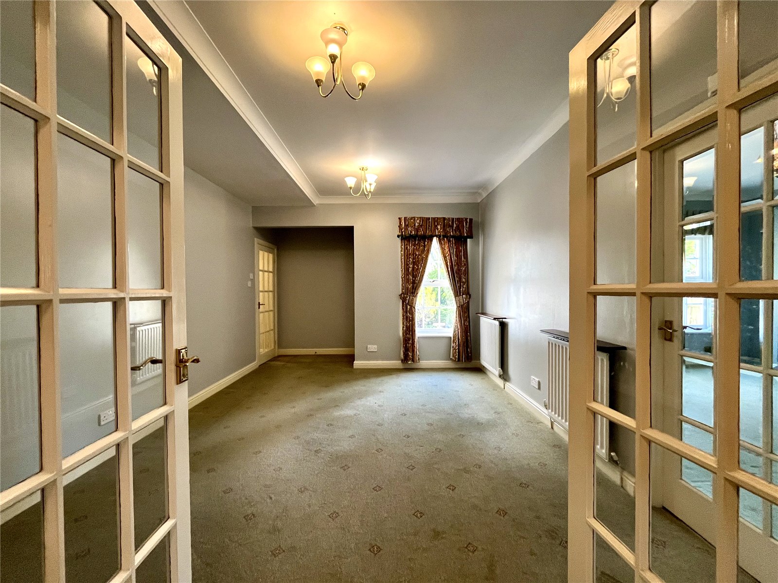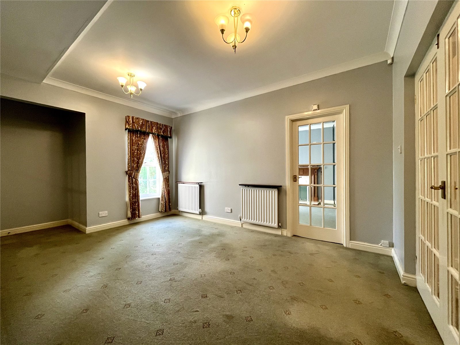 Fitted carpets, curtains and blinds are included in the sale.