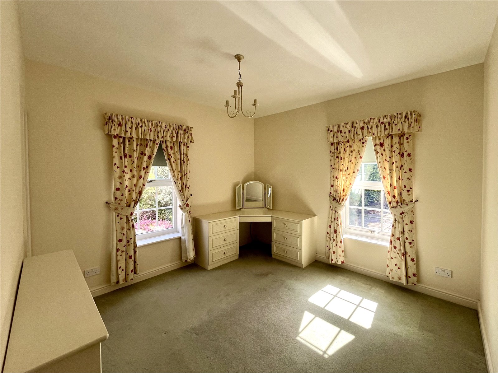 (measurement plus door recess) Fitted dressing table with drawer units. Windows to two aspects overlooking the patio/gardens. Built-in wardrobe.