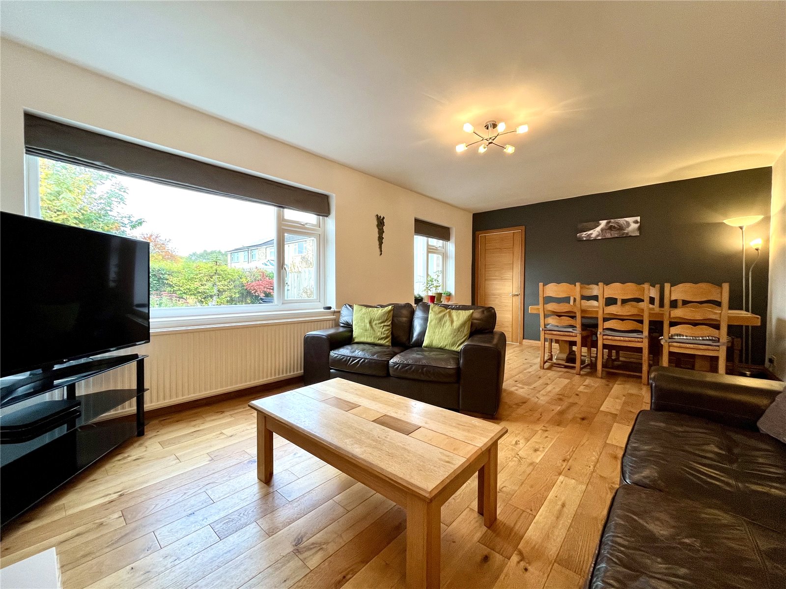 With large picture window enjoying a pleasant and open outlook. Open-plan with: