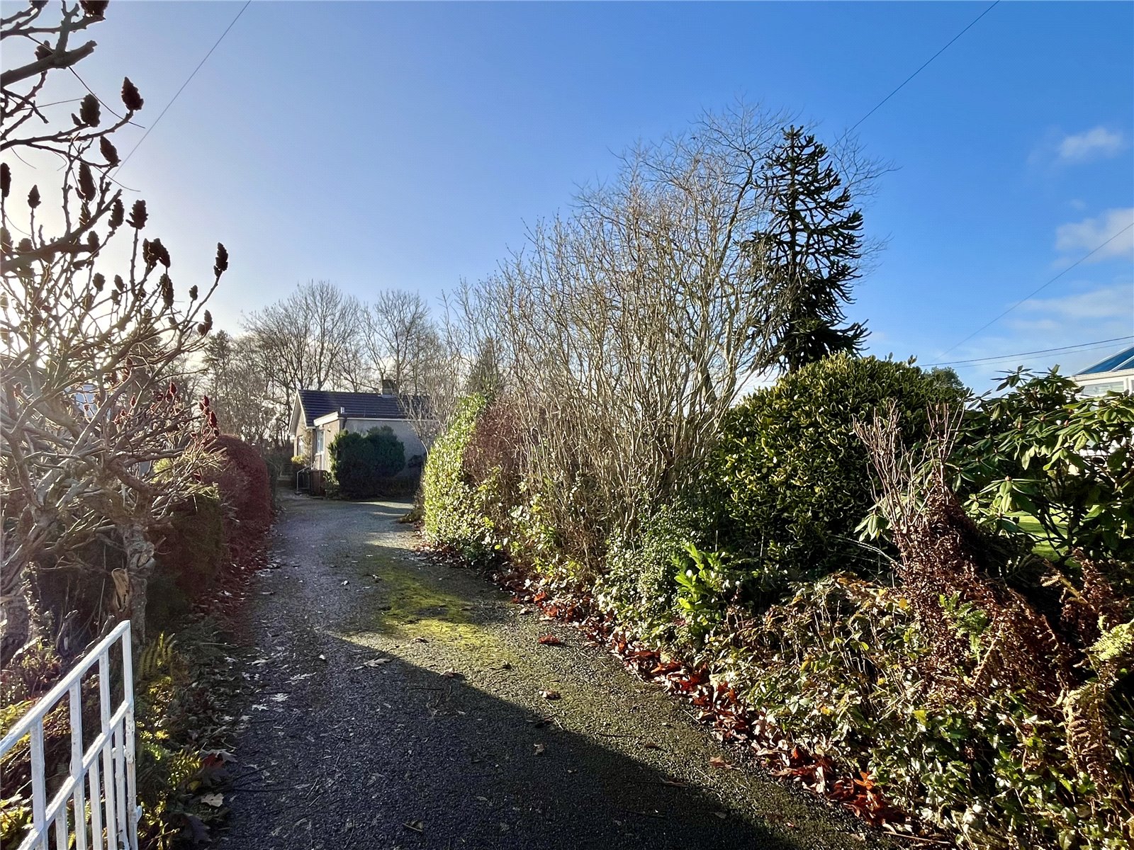 The property is approached by a long private driveway which leads to an ample parking and turning area, the gardens are mature to all sides comprising lawned areas, bushes and flowers, surrounded by hedging/fencing.