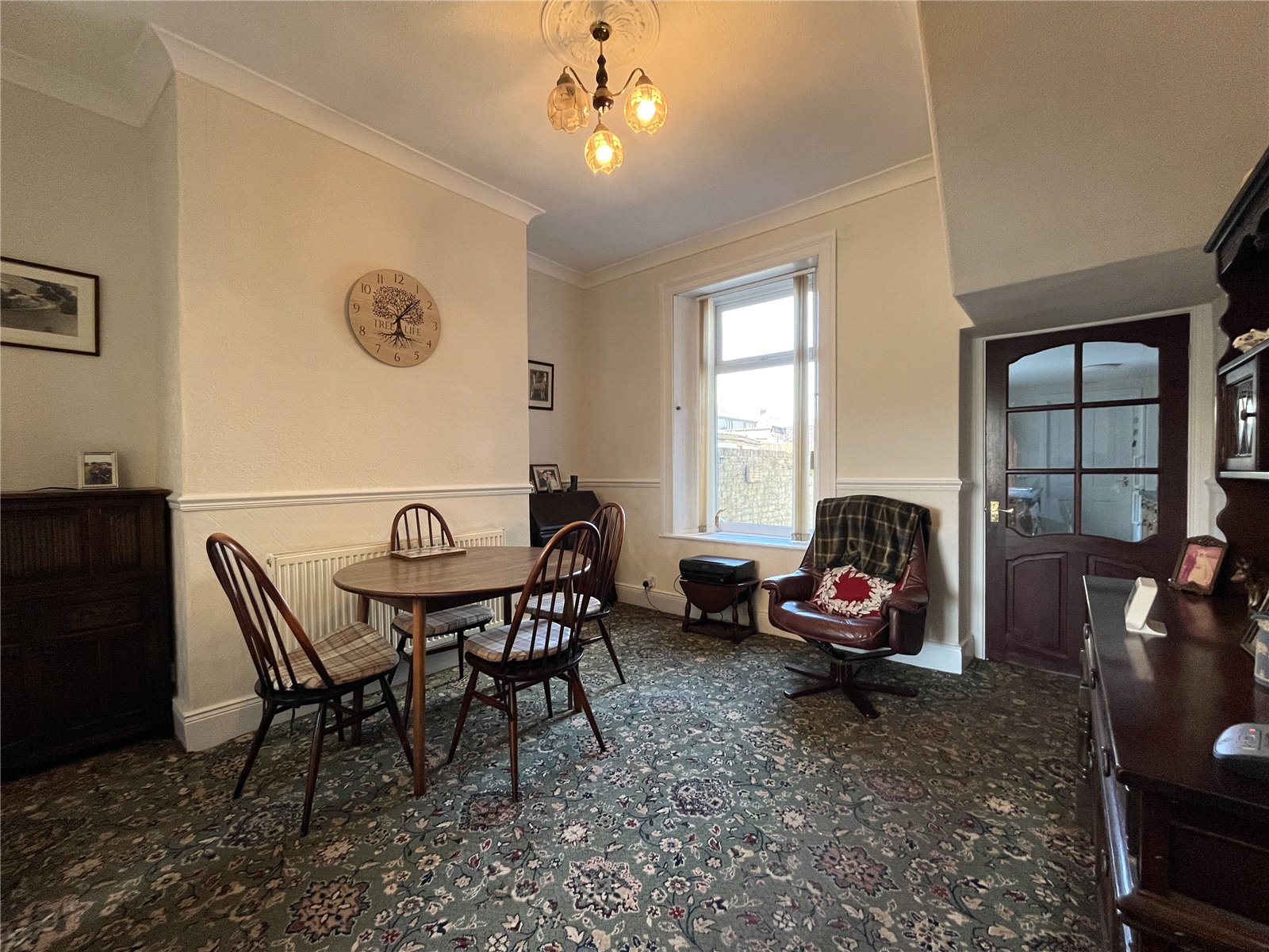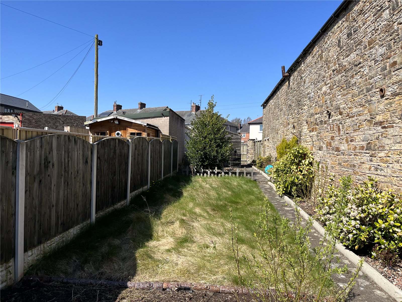 This is a stone fronted three bedroom mid-terraced family home offering well-proportioned accommodation. There is a small patio sitting area to the front and a very large garden to the rear with lawned areas, pathways and patios, all enclosed by high stone walling and fencing. This back garden also has a large garden shed, a brick outhouse and provides private off-street parking. The accommodation has full gas fired central heating throughout and is being offered with no ongoing chain.