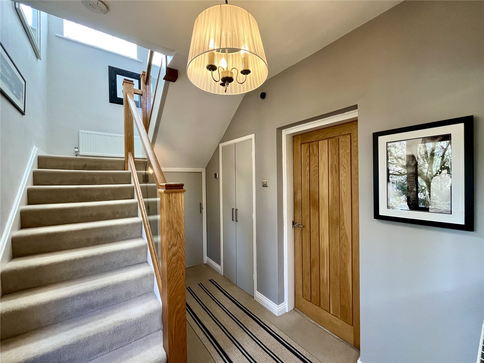 (measurement overall) Staircase to first floor with oak and glass side. Large storage cupboard below with additional storage and bespoke fitted drawers under. Useful shelved cupboard.