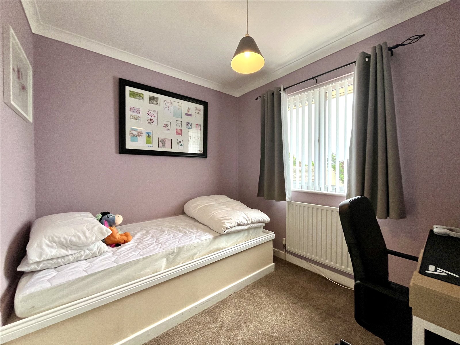 To the front with a pleasant outlook. Range of fitted wardrobes with hanging and shelving space. Cornice ceiling.