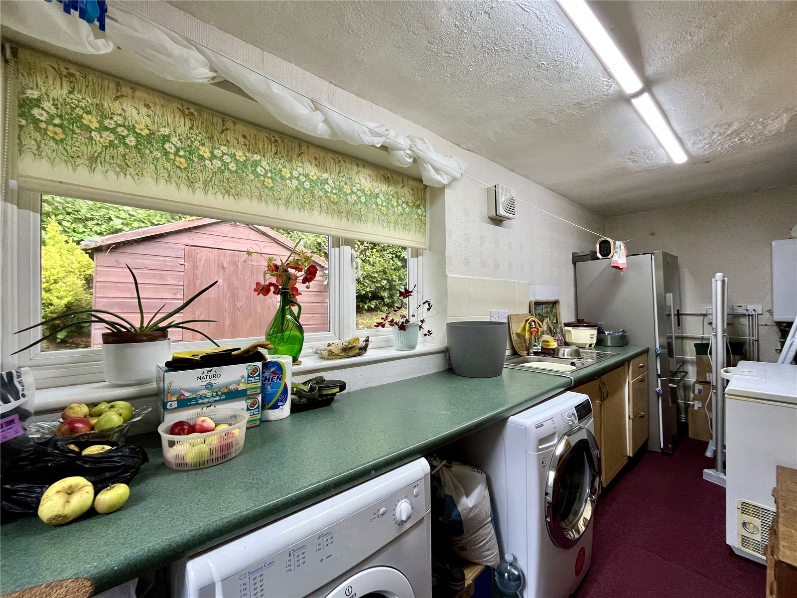 Fitted wall and floor units with worktops incorporating a stainless steel sink with mixer tap over. Plumbing for washing machine. uPVC rear door to gardens.