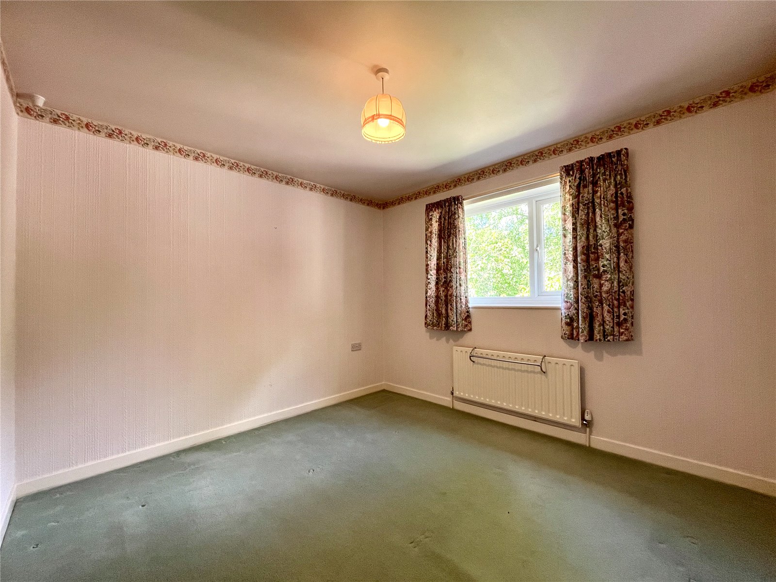 A light and airy room with windows to two aspects, both with pleasant views.