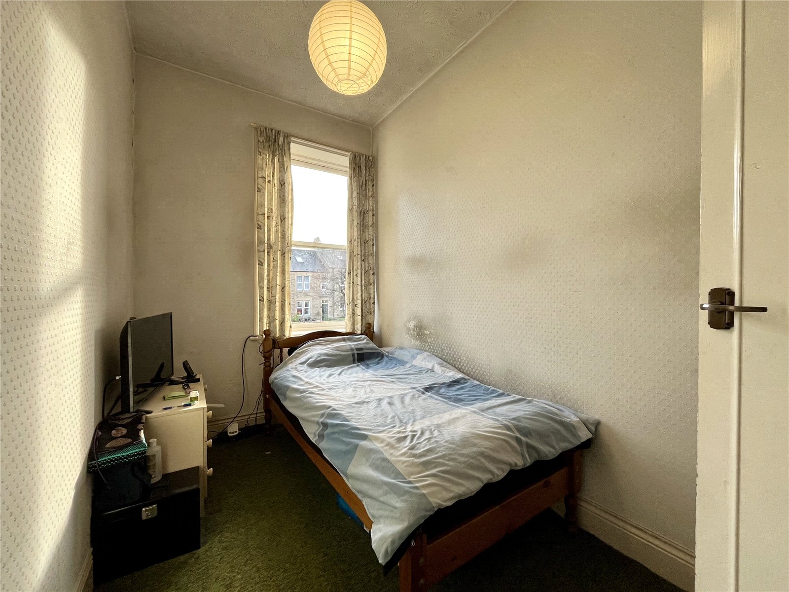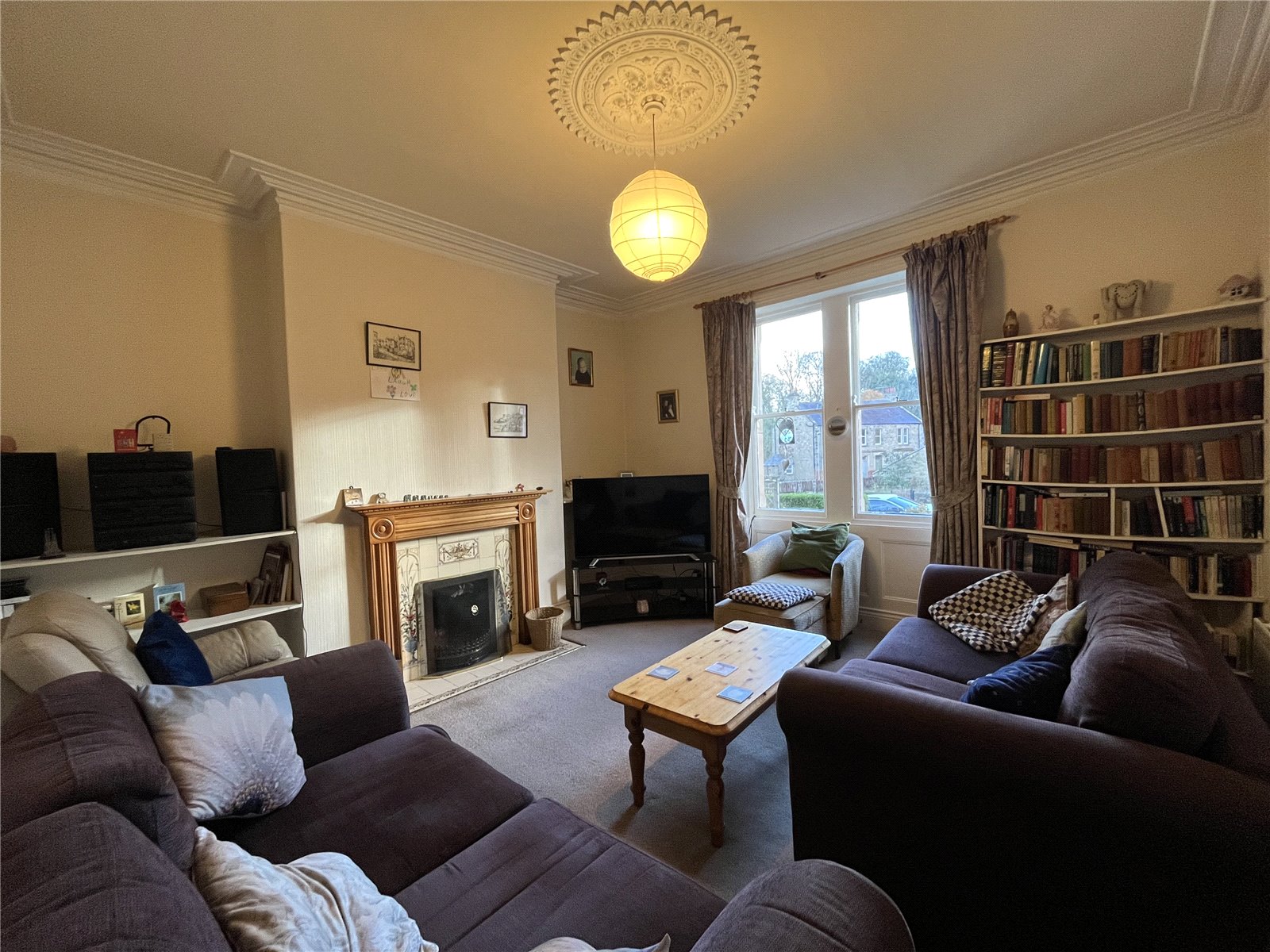 Fireplace incorporating an open fire. Ornate cornice ceiling and ceiling rose. Pleasant outlook to the front.