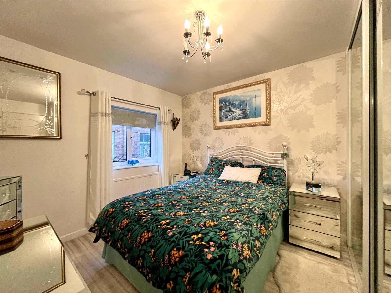 With fitted mirror fronted wardrobes with hanging and shelving space.